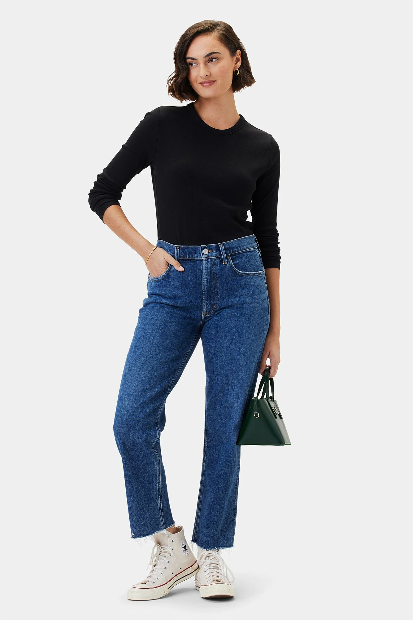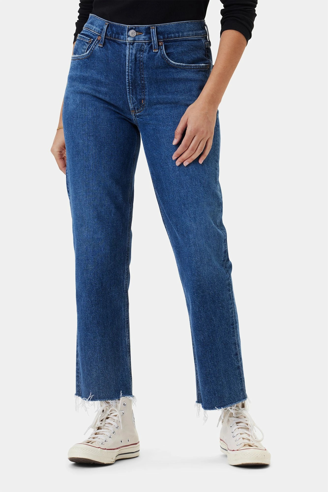 - Crafted in AGOLDE’s signature low stretch denim and designed with a comfortable mid-rise waist and a straight leg silhouette that hits just above the ankle – makes this new style the perfect everyday jean.Â
