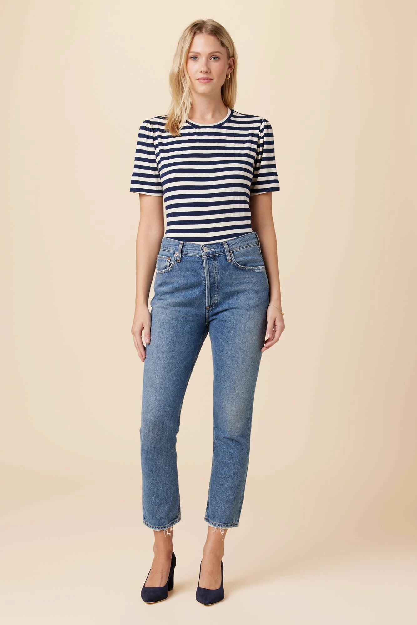 - AGOLDE’s signature slim-straight leg. With a better-than-vintage aesthetic, the Riley is an iconic brand favorite. The flattering high-rise and straight leg hold close to the body for a universally loved look.