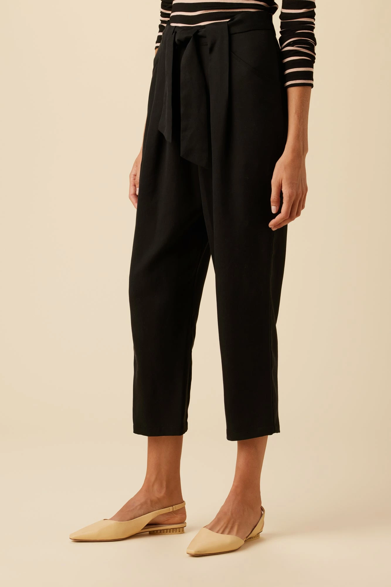 - Our best selling pant features a cropped silhouette, tie waist, and pleated front.