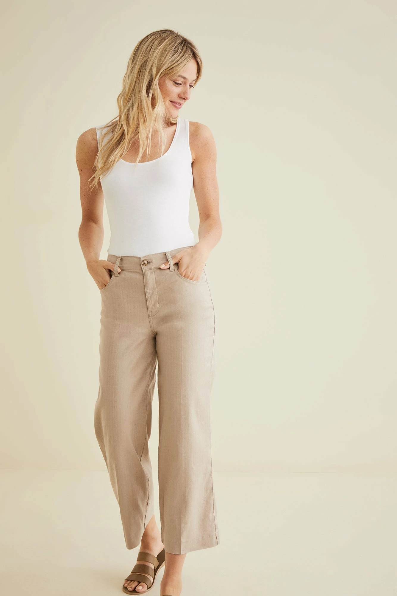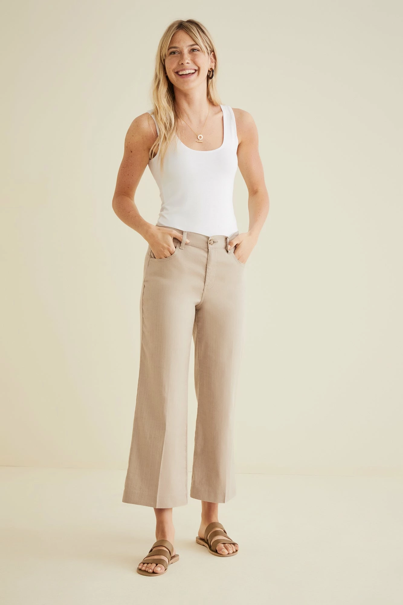Wide leg cropped pants that fall above the ankle. Made from a blend of Linen and Lyocell, these pants are soft and breathable allowing for all day comfort.