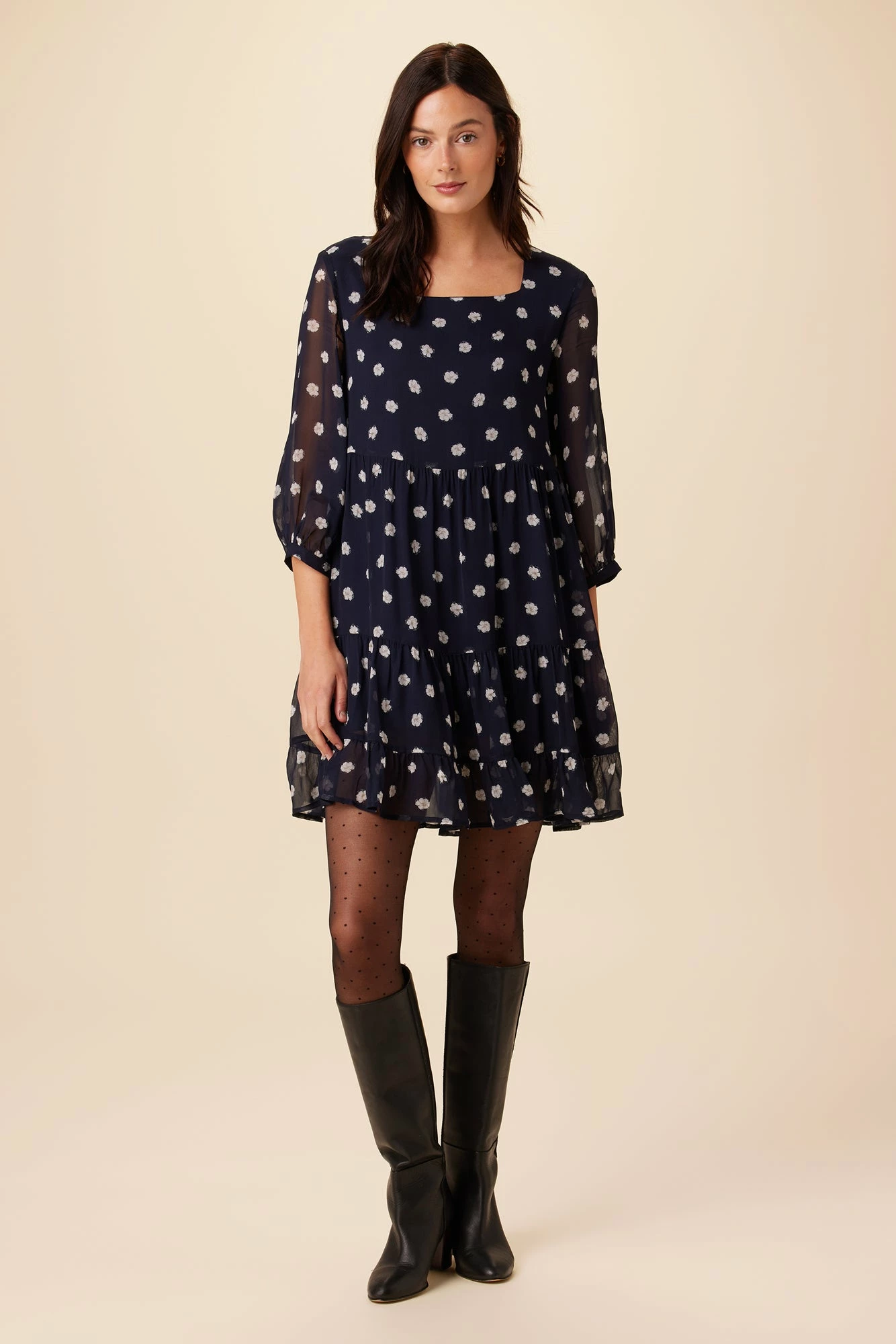- Your new favorite grab-and-go dress features a babydoll silhouette with an attached lining, tiered skirt and sheer sleeves with cuff detail.