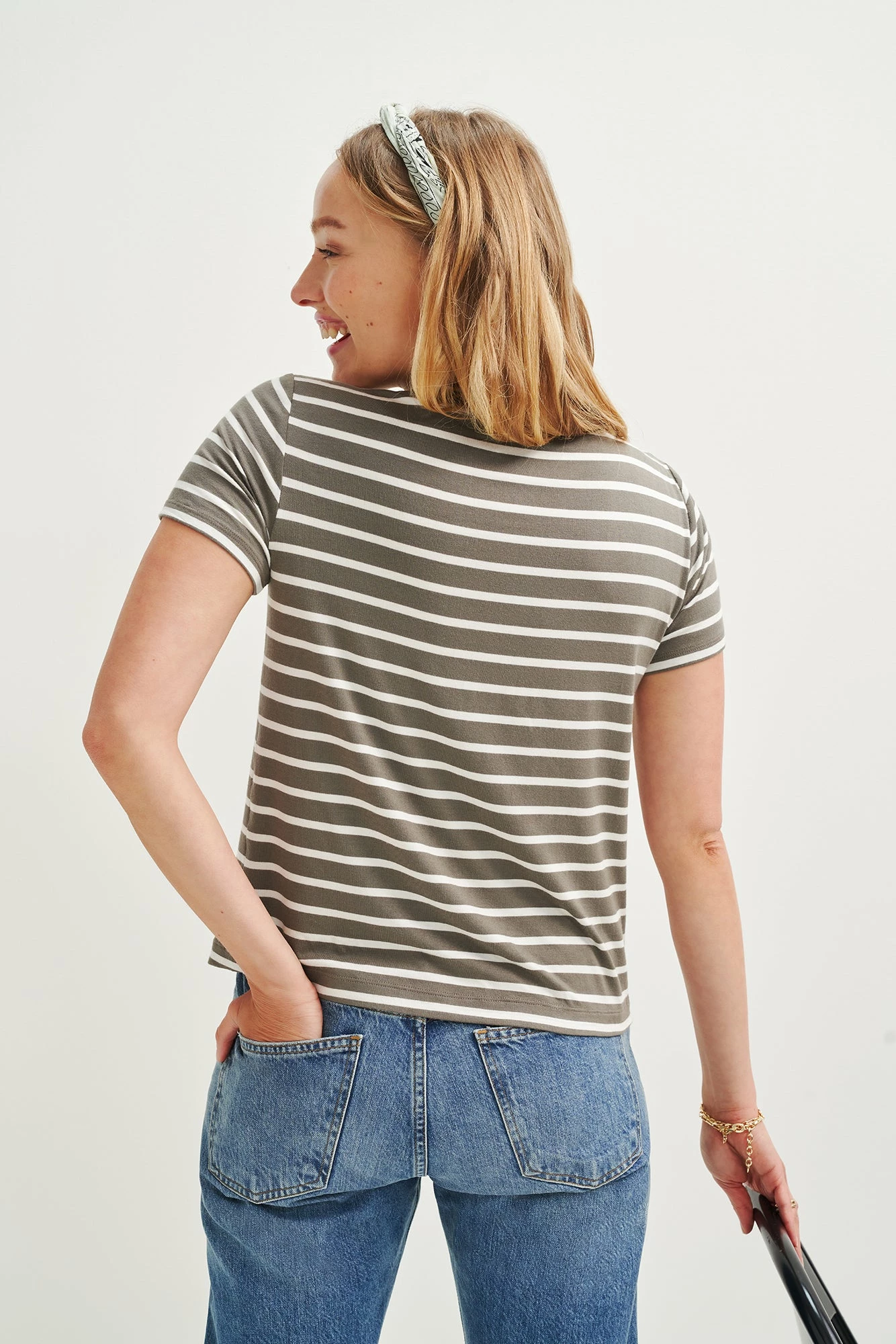 Short sleeve tee with an open neck and easy, relaxed fit. Made from our softest Dream Knit, this basic can be rotated through your wardrobe all year long.