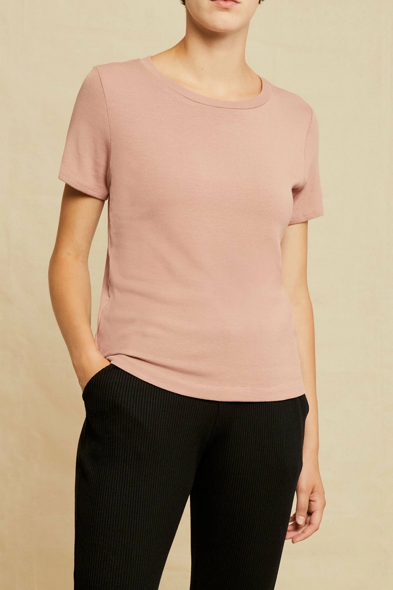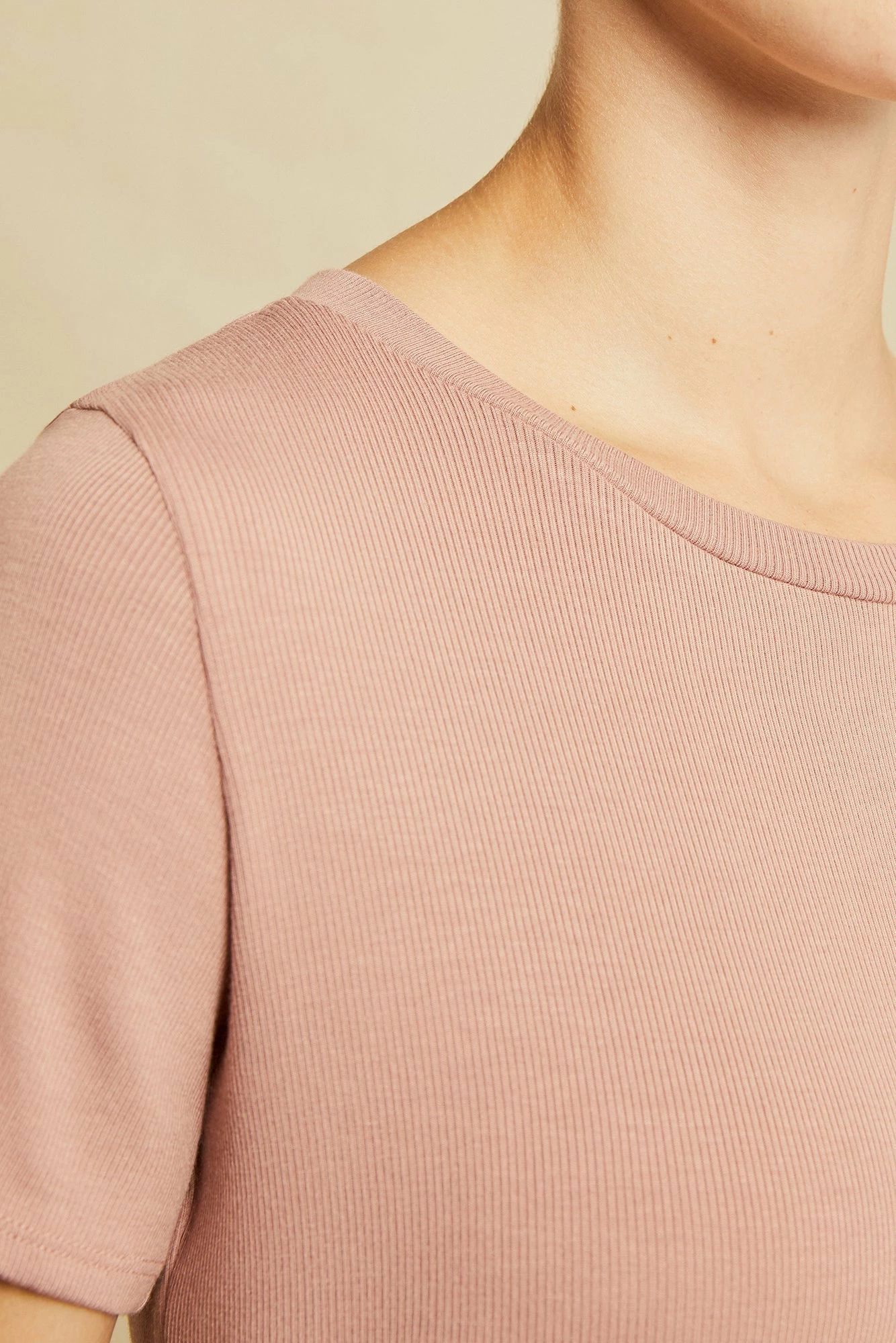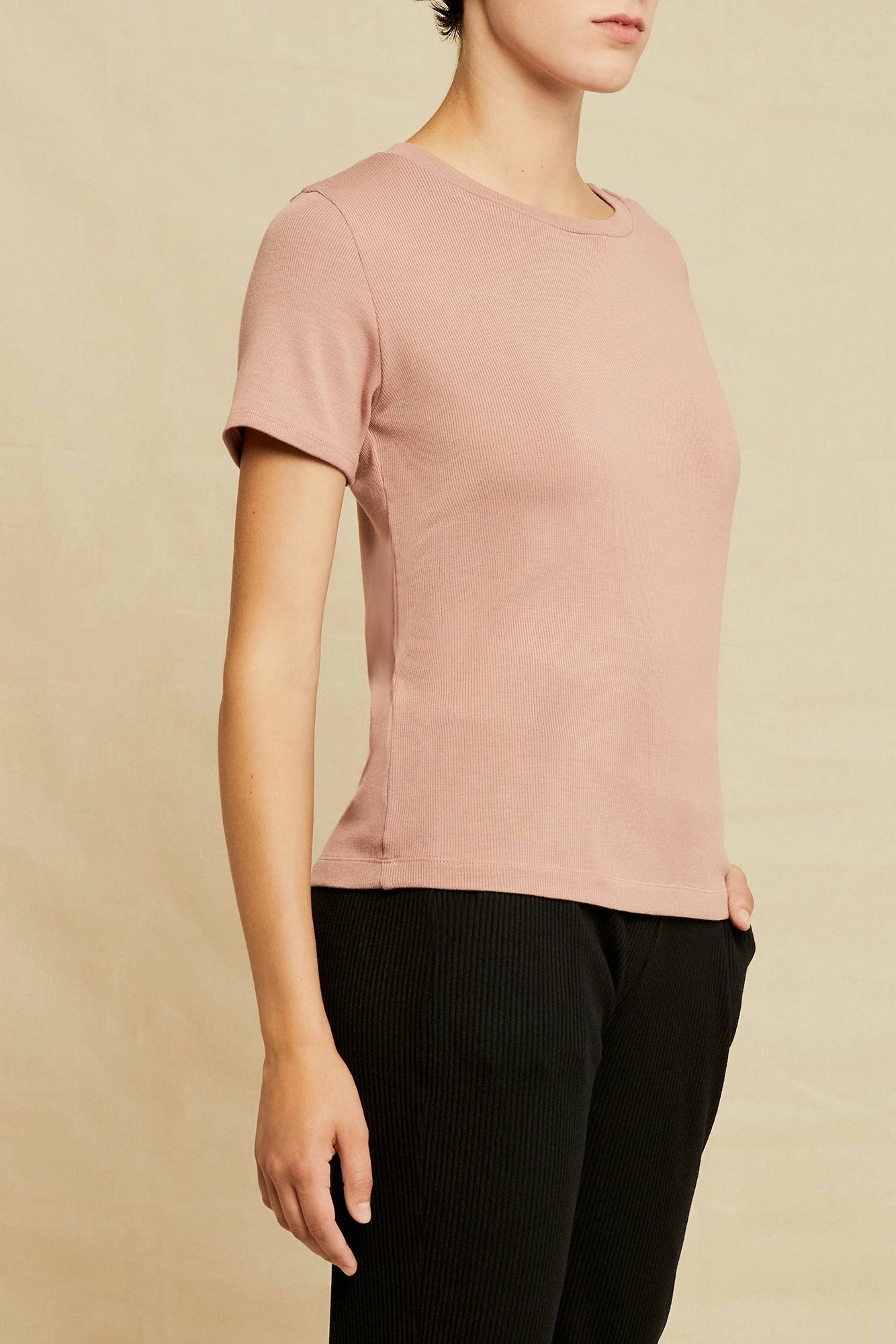 Short sleeve tee with an open neck and clingy, relaxed silhouette. Made in our silky-smooth Dream Rib, perfect for layering or wearing alone.