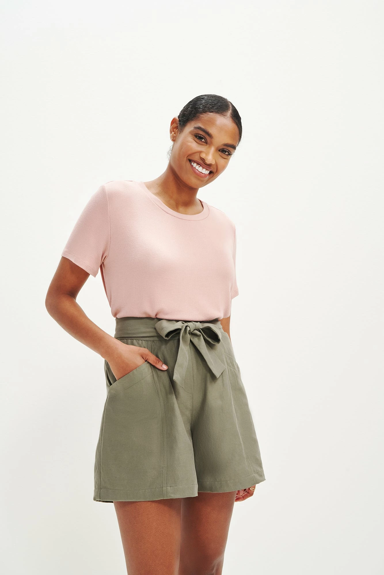 Short sleeve tee with an open neck and clingy, relaxed silhouette. Made in our silky-smooth Dream Rib, perfect for layering or wearing alone.