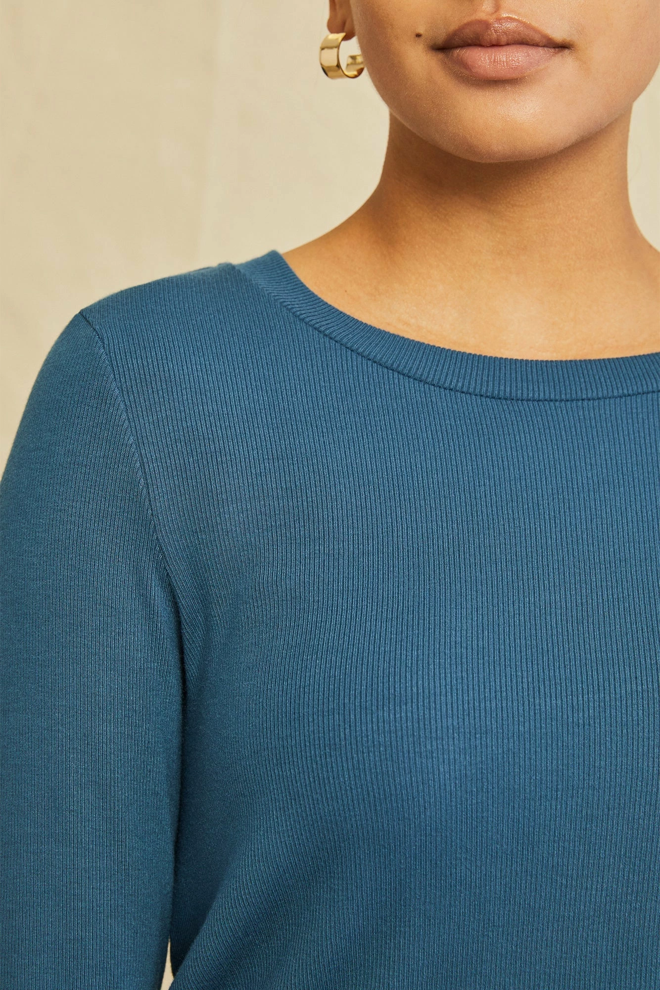 Long sleeve tee with an open neck and clingy, relaxed silhouette. Made in our silky-smooth Dream Rib, perfect for layering or wearing alone.