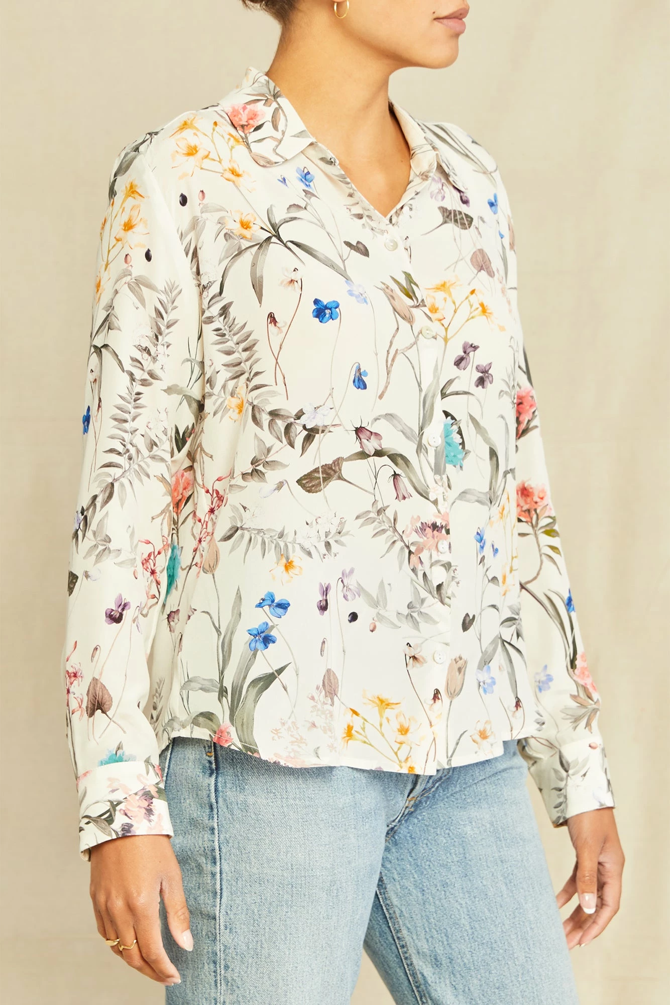 Long sleeve button-down blouse with a collar and easy, relaxed fit. Made in our finest silk, this is the perfect staple to have year-round.