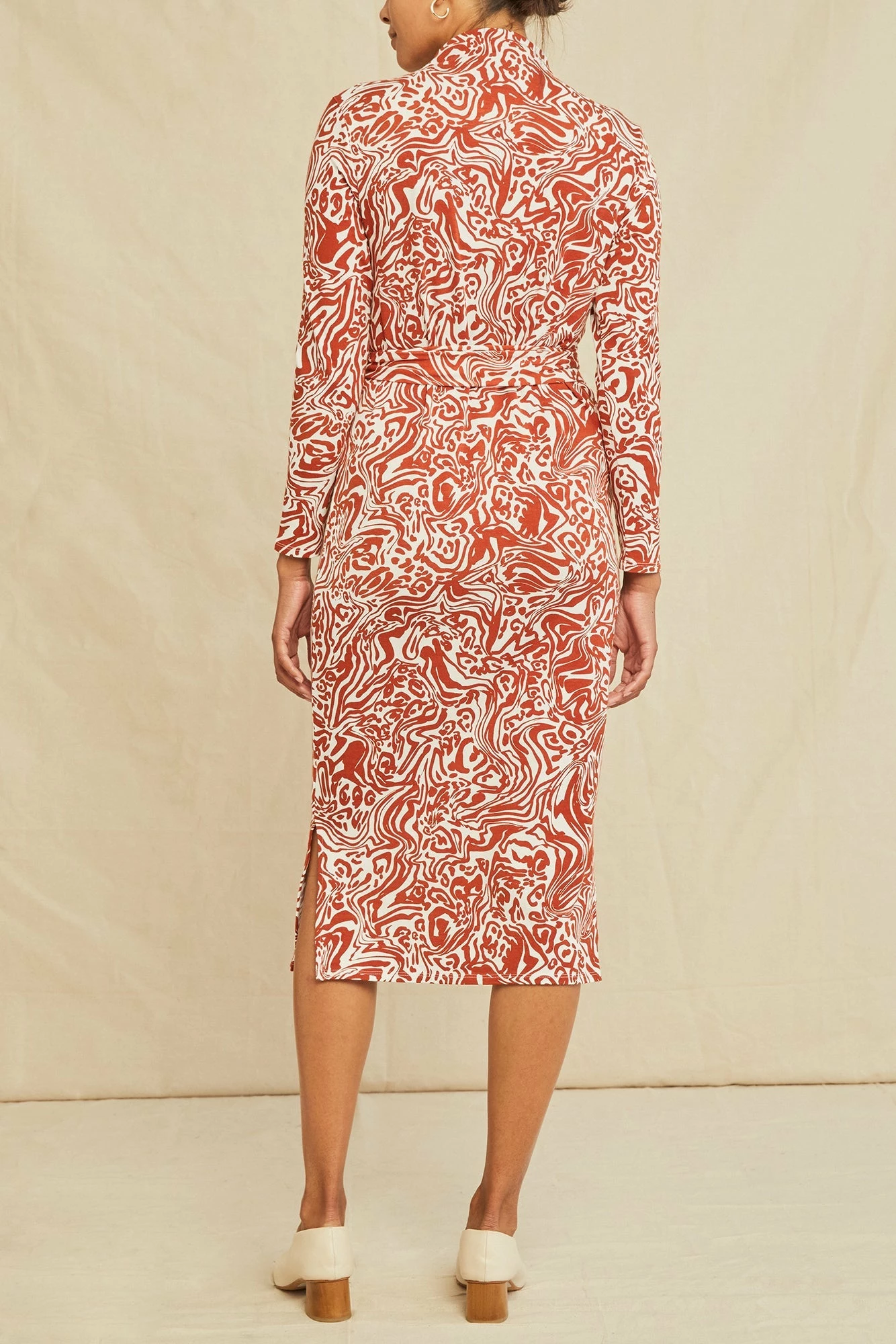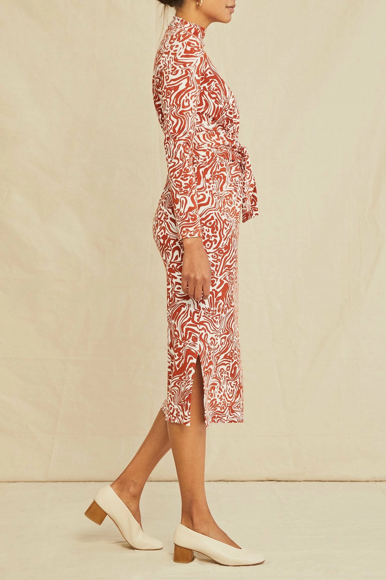 Midi dress featuring a mock neck, long sleeves, and an adjustable waist tie. Made from our premium blend of Organic Cotton and Modal for a soft and comfortable fit.