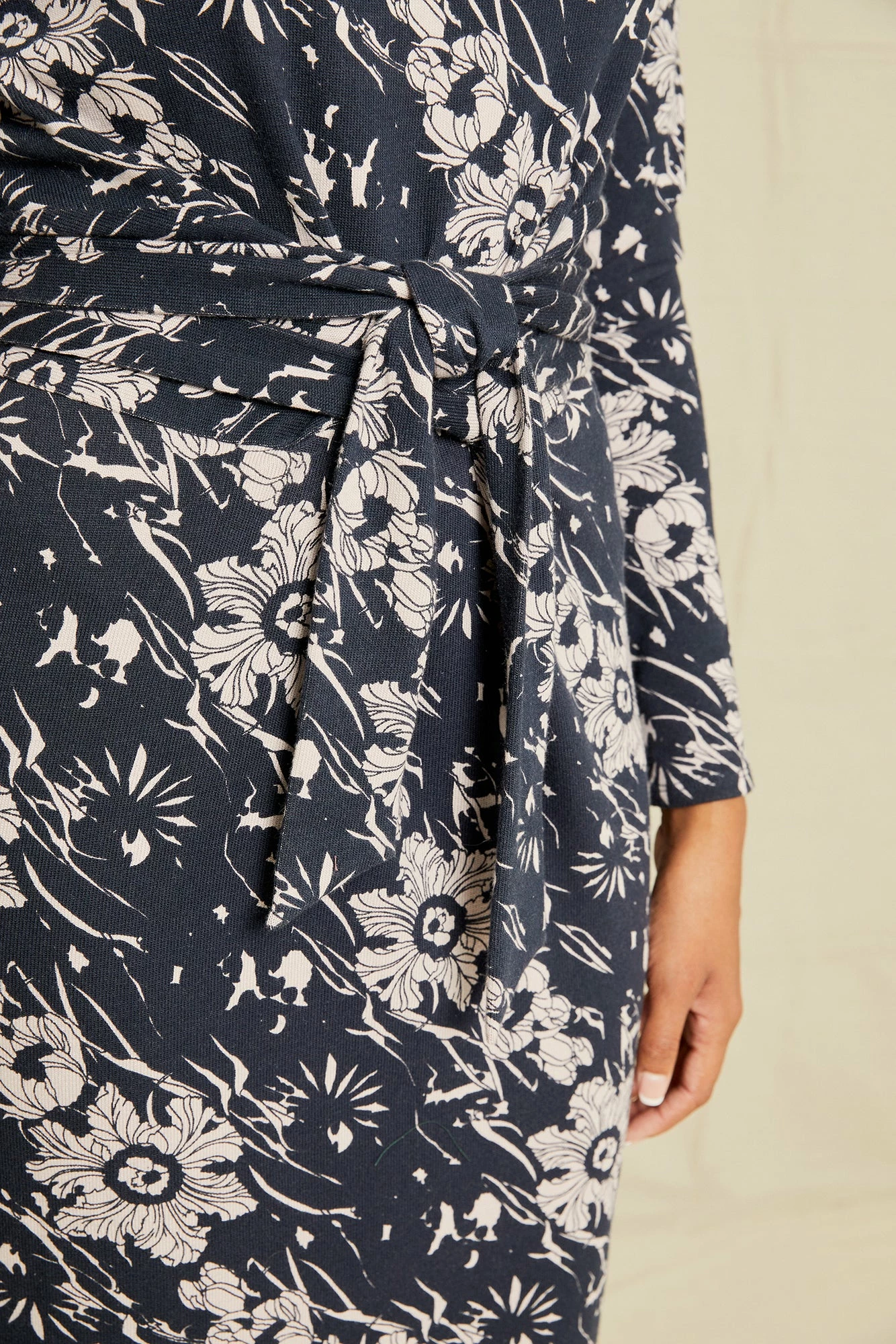 Midi dress featuring a mock neck, long sleeves, and an adjustable waist tie. Made from our premium blend of Organic Cotton and Modal for a soft and comfortable fit.