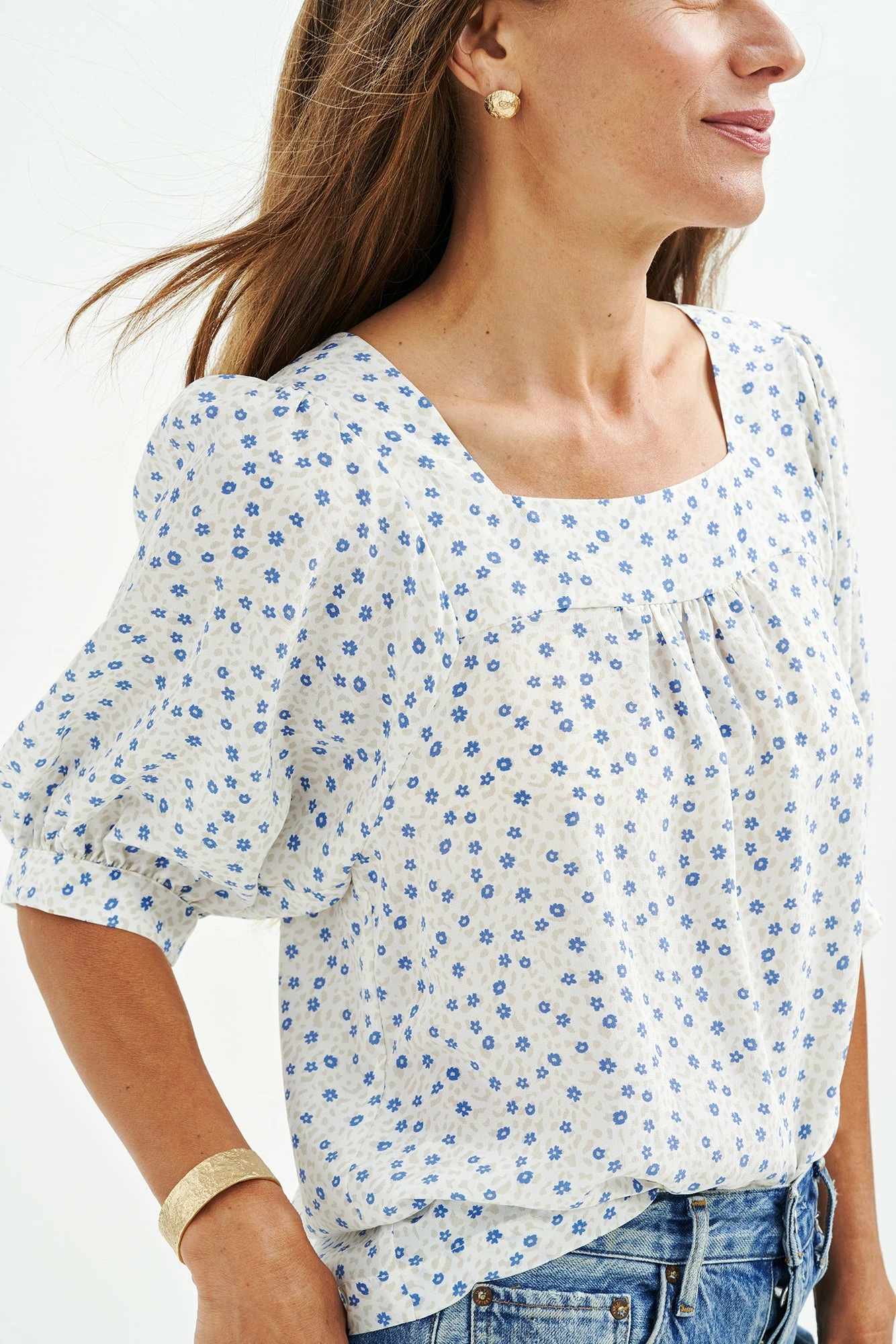 Square-neck blouse with short puff sleeves and a relaxed silhouette that can be worn tucked in or loose. Made in the silk you love, reimaged with the practical update you need – the ease of being machine washable.