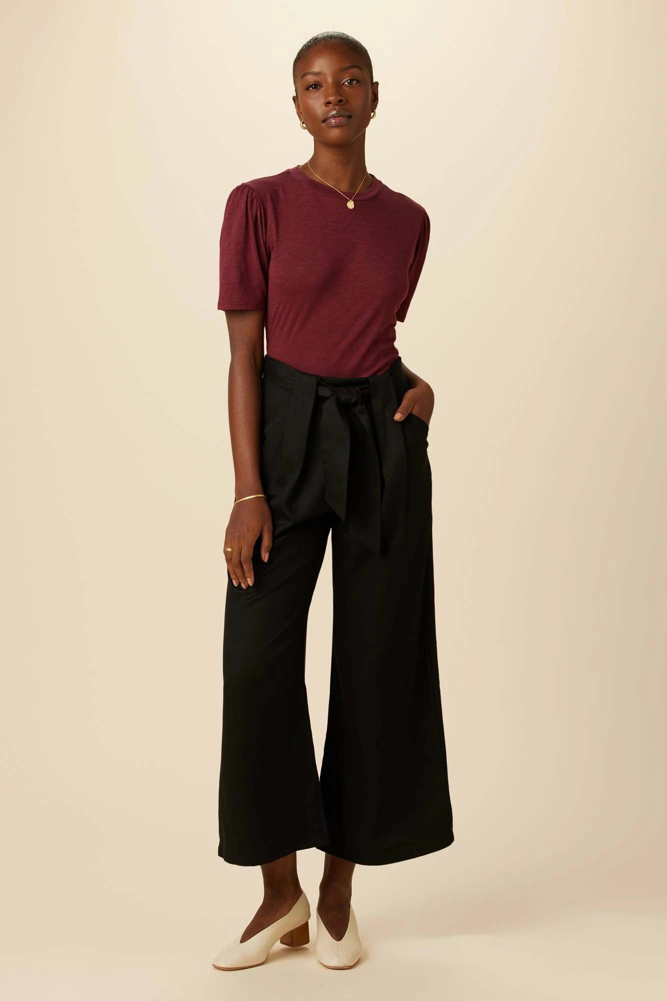 - Made from an ultra-smooth twill with a soft drape, these pleated wide-leg crops have an invisible side zipper, front pockets, and an adjustable tie waist.