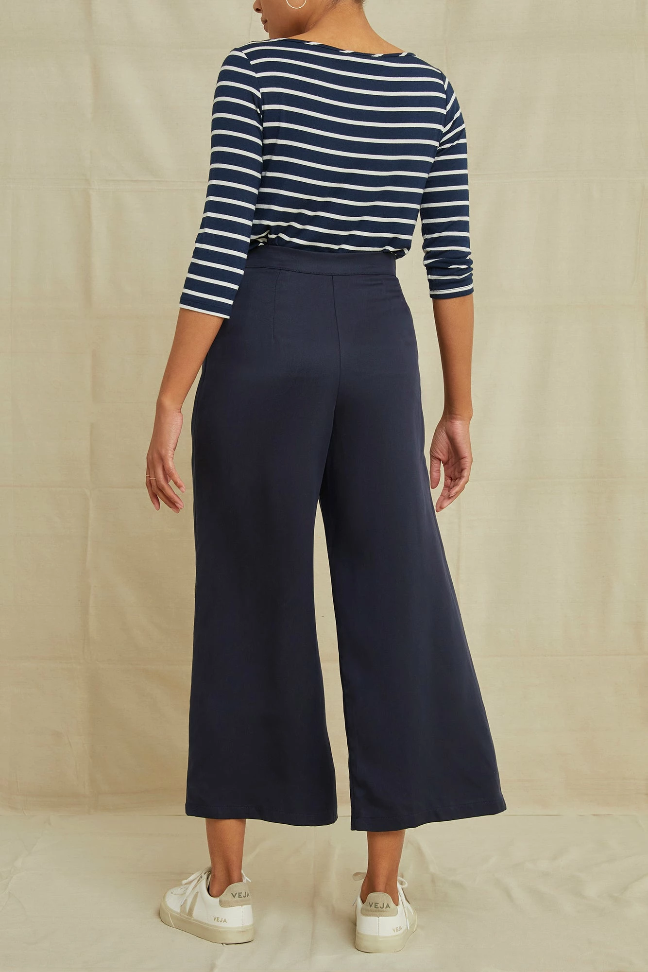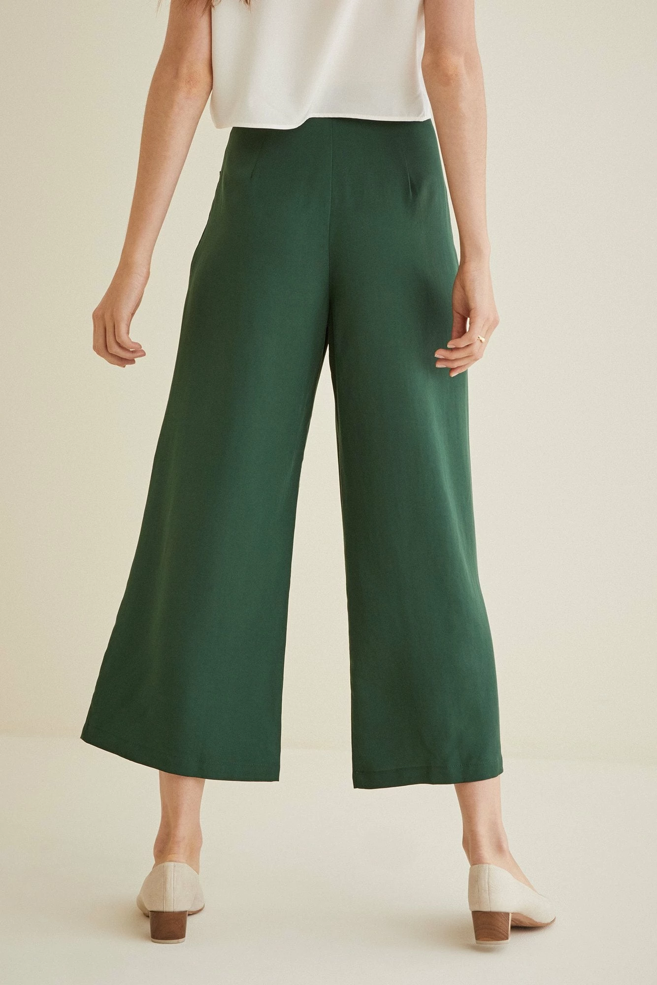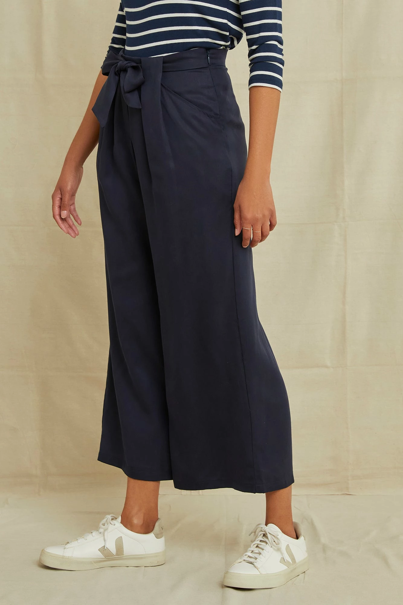 Made from an ultra-smooth twill with a soft drape, these pleated wide-leg crops have an invisible side zipper, front pockets, and an adjustable tie waist.