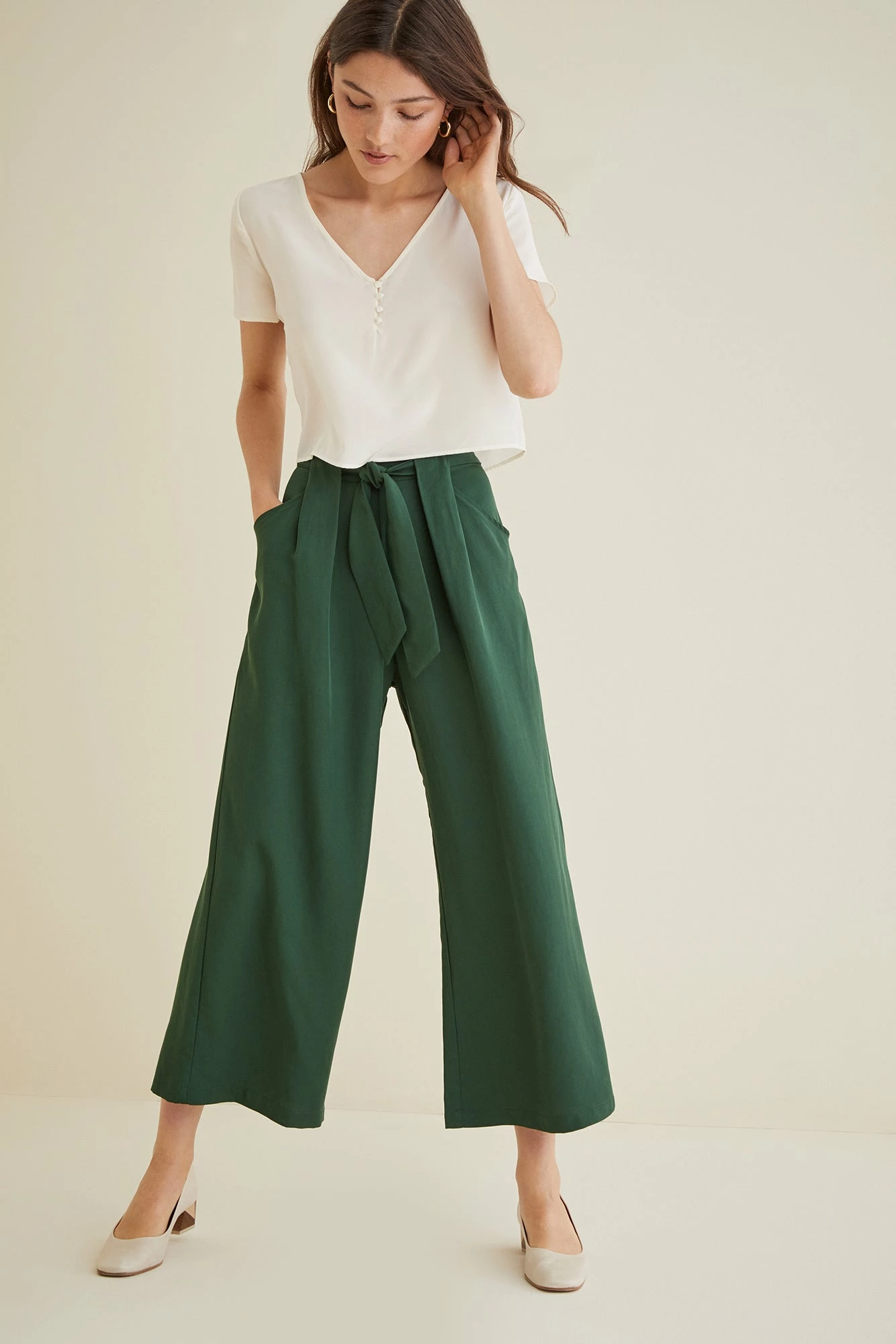 Made from an ultra-smooth twill with a soft drape, these pleated wide-leg crops have an invisible side zipper, front pockets, and an adjustable tie waist.