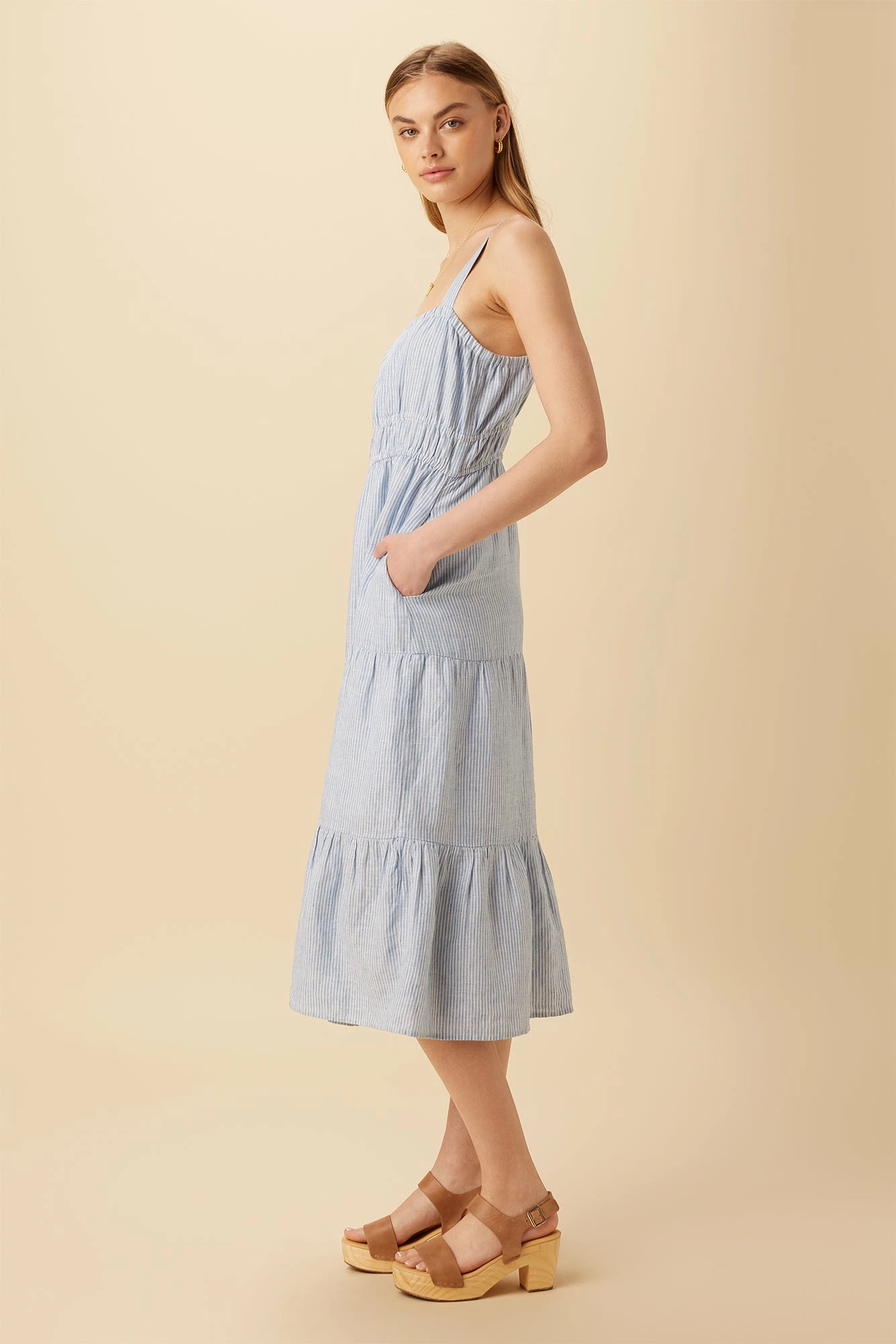 Be the first to review “Elio Linen Midi Dress – Blue Natural Stripe” Cancel reply