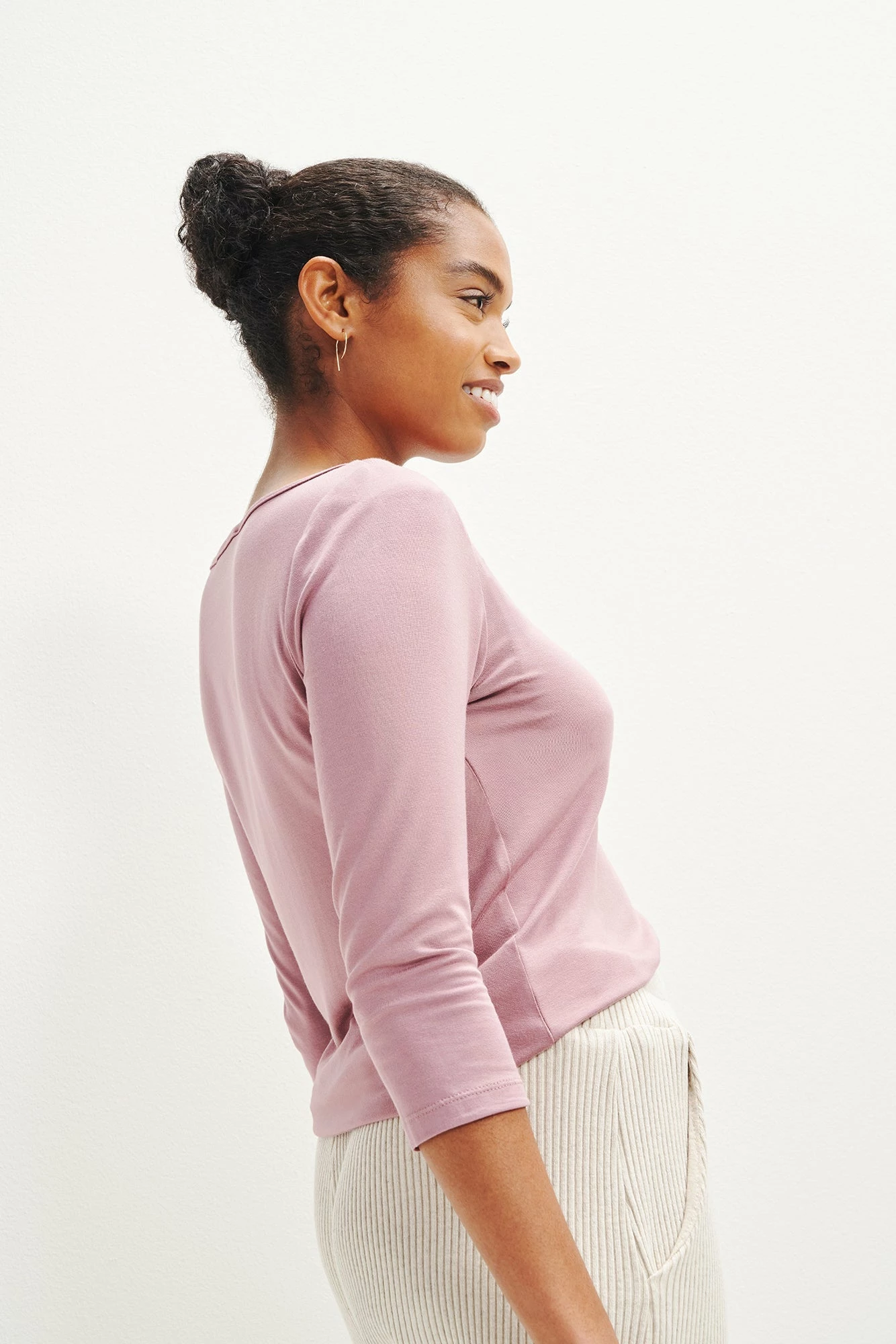3/4 sleeve tee with a classic boat neckline and easy silhouette. This super soft and versatile tee is made from our signature Dream Knit.