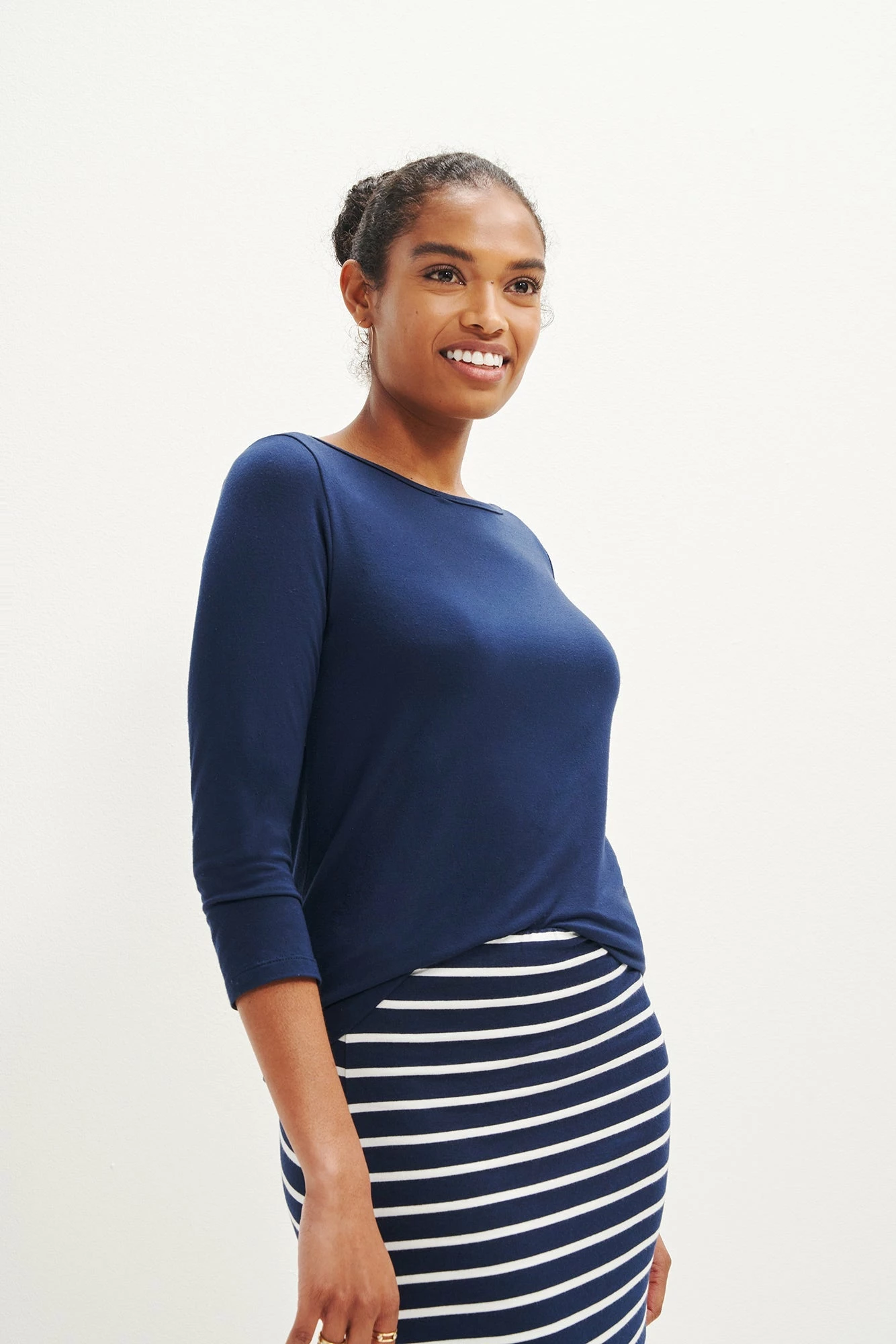 3/4 sleeve tee with a classic boat neckline and easy silhouette. This super soft and versatile tee is made from our signature Dream Knit.