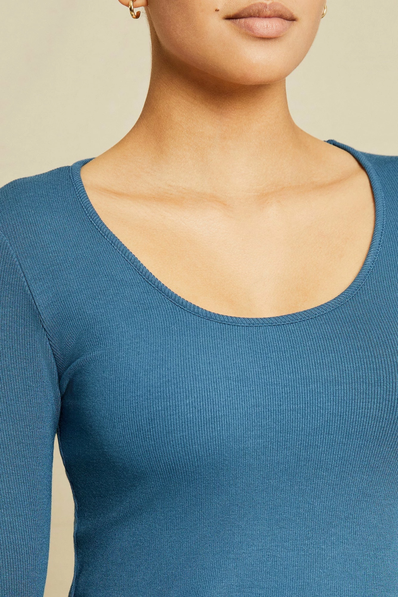 Long sleeve tee with an open neck and shirt-tail hem. A great layering piece made from our lightweight, ultra-soft Dream Rib fabric.