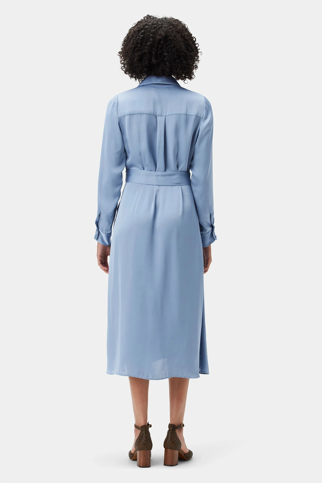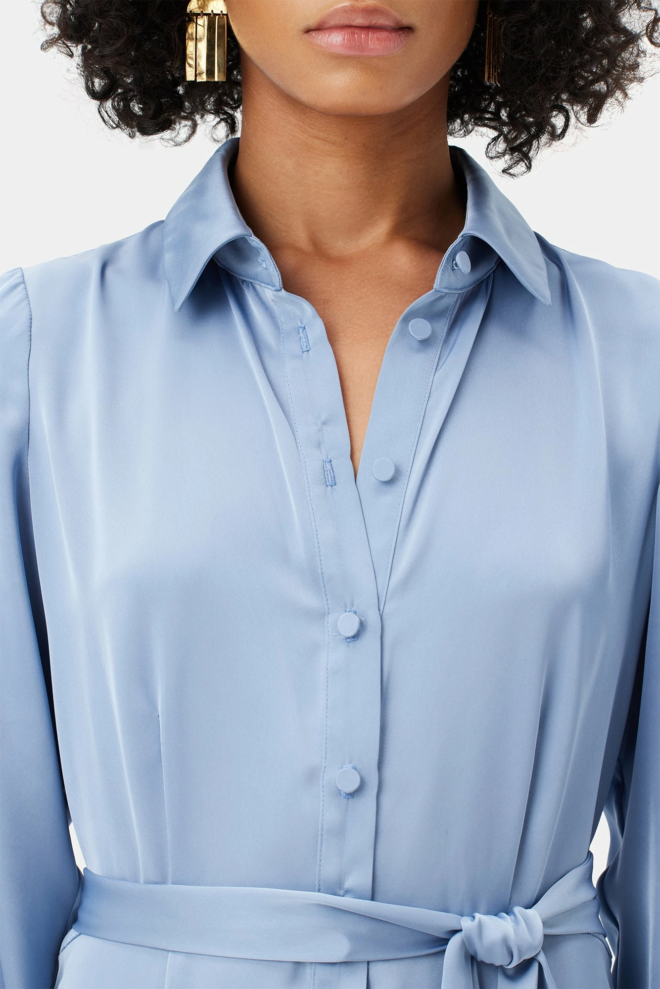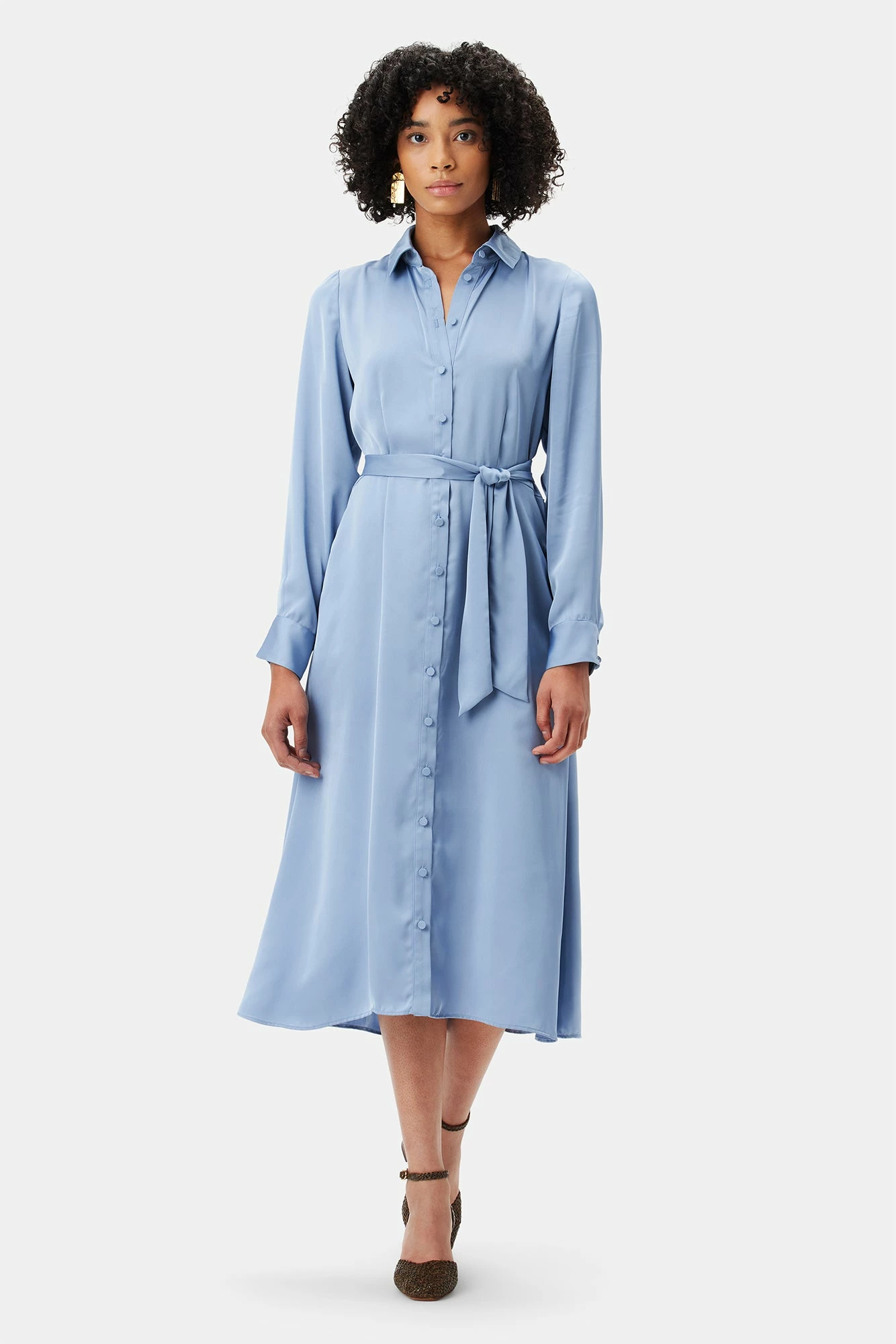 - Long sleeve shirtdress featuring an a-line silhouette, functional buttons and detachable tie at waist.