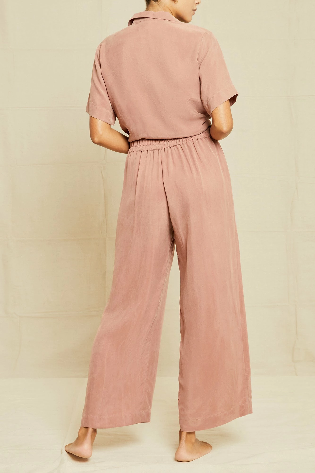 Wide leg pajama pants with side seam pockets and elastic at the back waist. Made from our silky-smooth Cupro charmeuse, a vegan silk alternative made from leftover cotton waste.