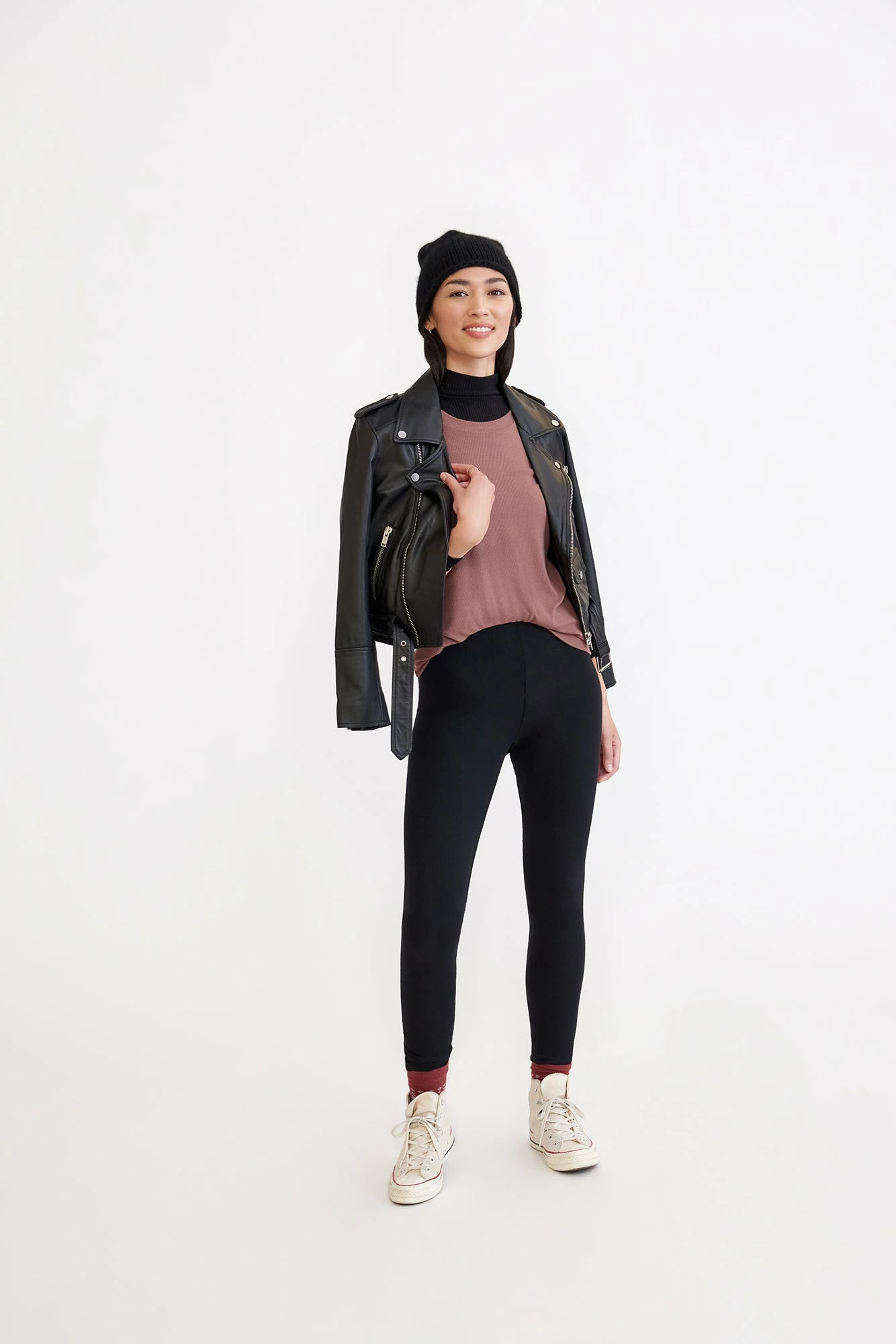 Classic high waisted leggings made in our silky-smooth Dream Rib – these are a true wardrobe staple for at home lounging and everything in between.Â