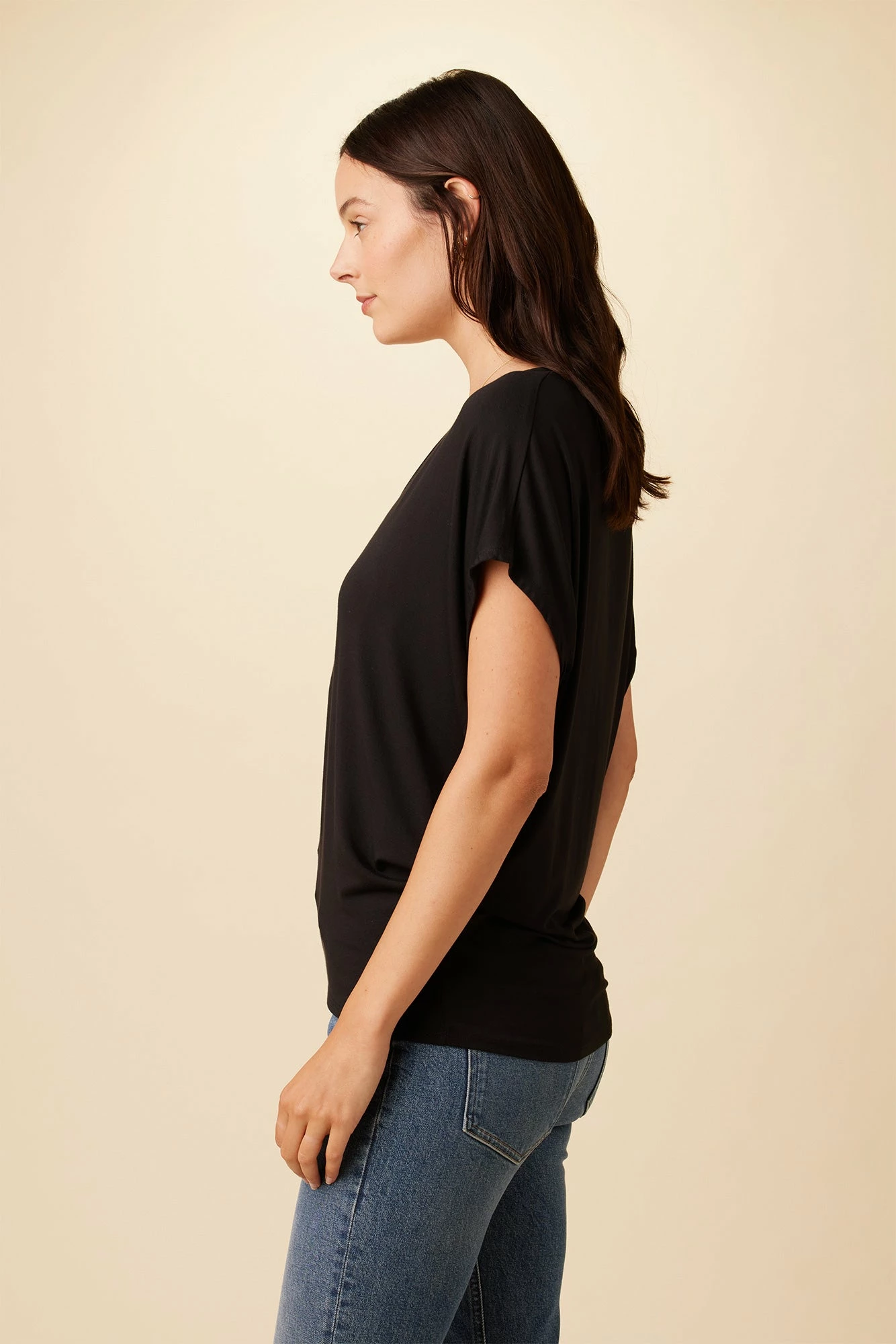 - Mayr is a feminine v-neck tee with just the right amount of sleeve.