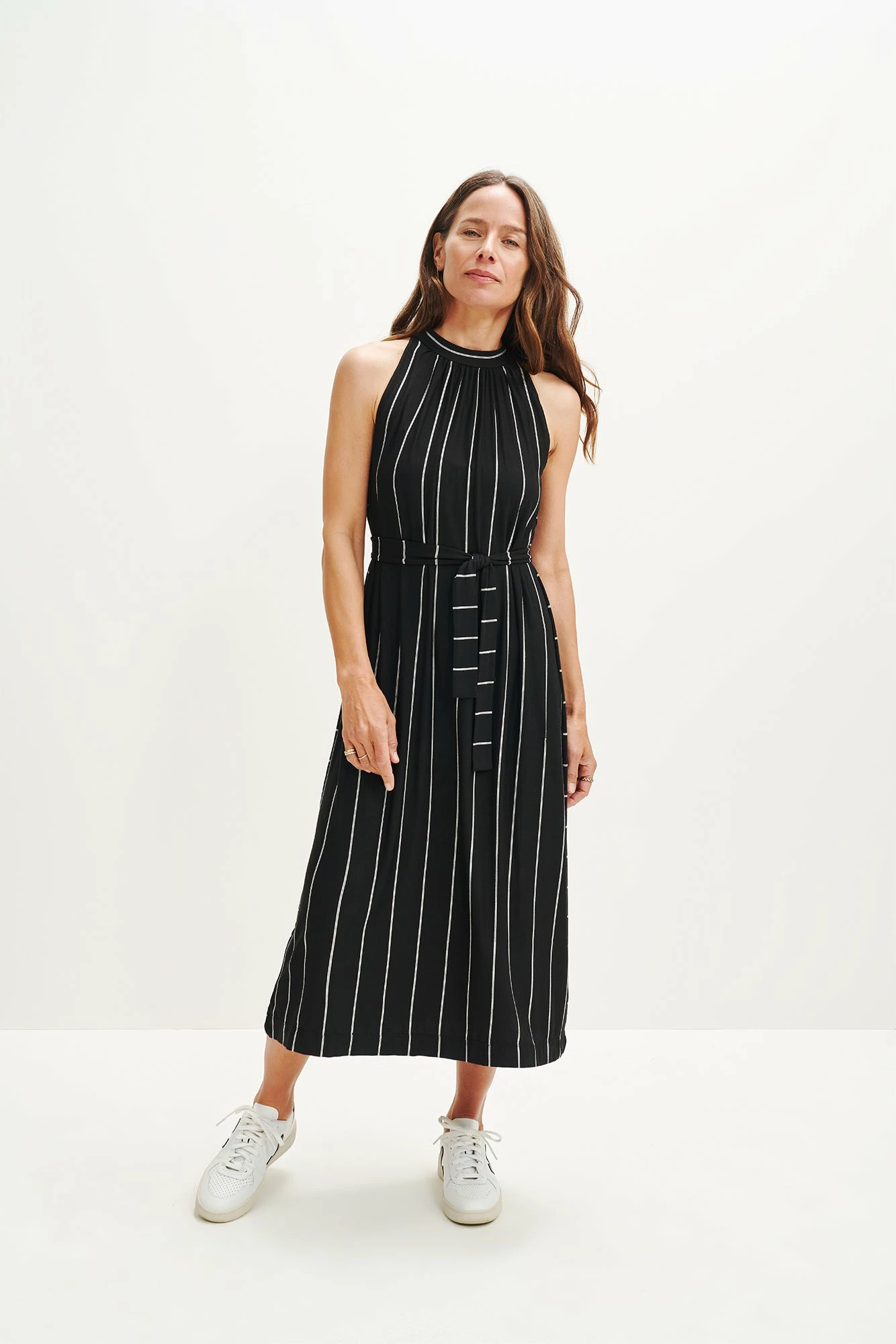 Sleeveless midi dress with a halter top, keyhole opening with a tie in the back, and an adjustable waist tie. Created in an entirely zero-waste process and made from our softest signature Dream Knit fabric.