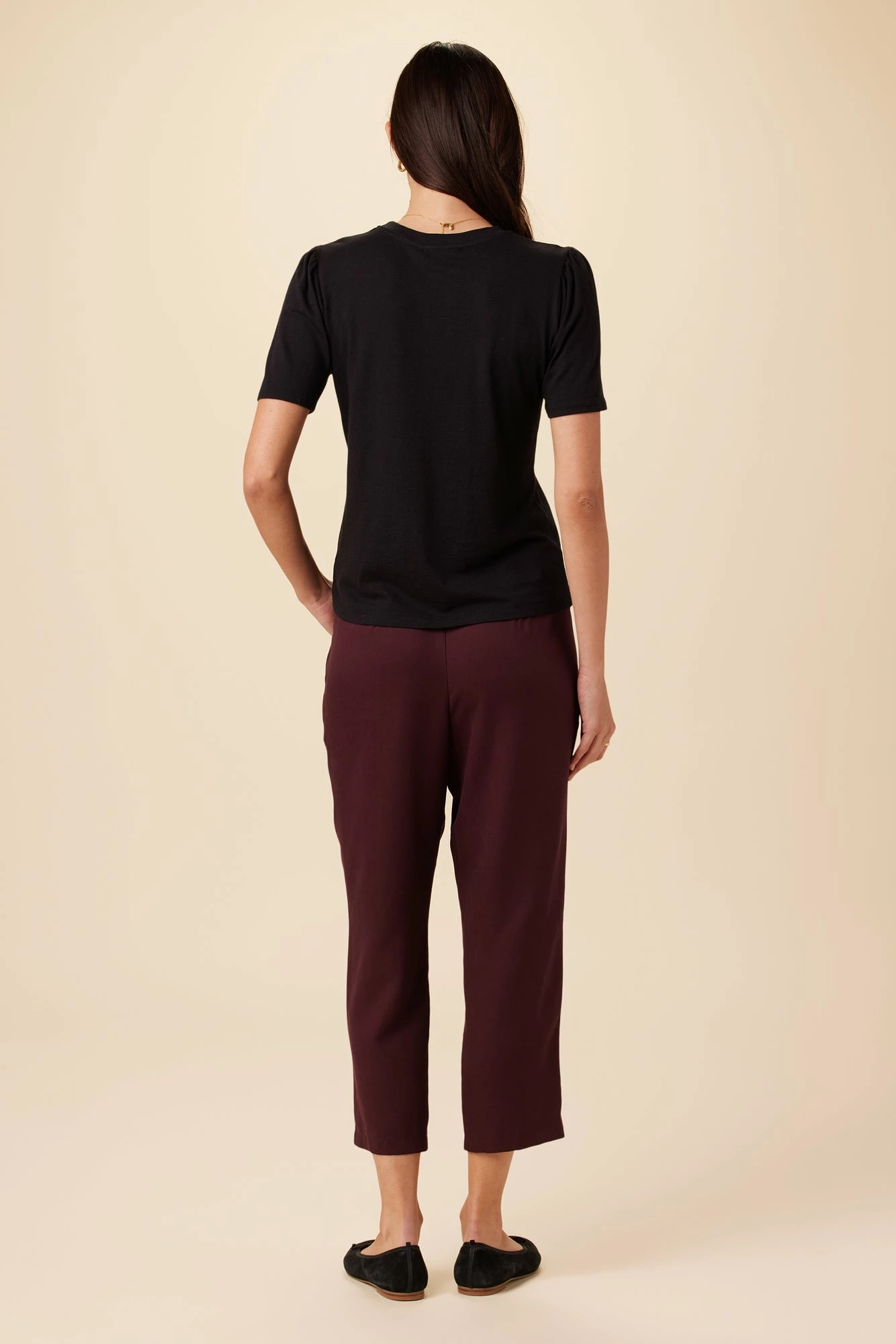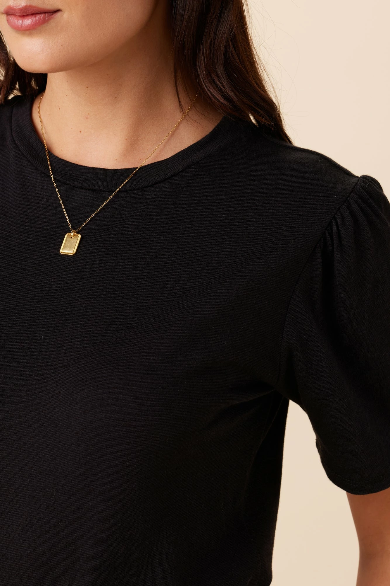 - Basic crewneck tee detailed with pleating at the sleeves for a little added volume.