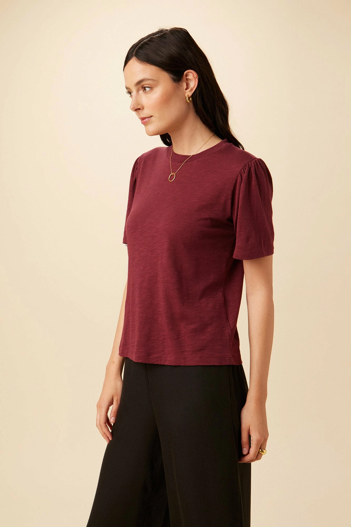 Basic crewneck tee detailed with pleating at the sleeves for a little added volume. Made from our soft and most comfortable blend of Organic Cotton and Modal.