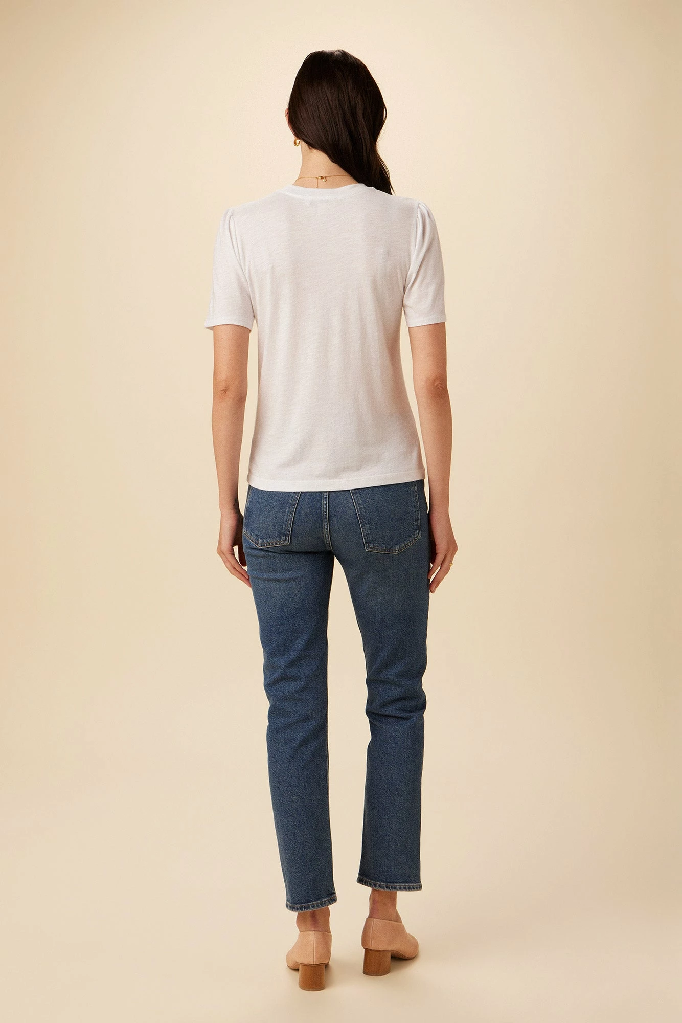 - Basic crewneck tee detailed with pleating at the sleeves for a little added volume.