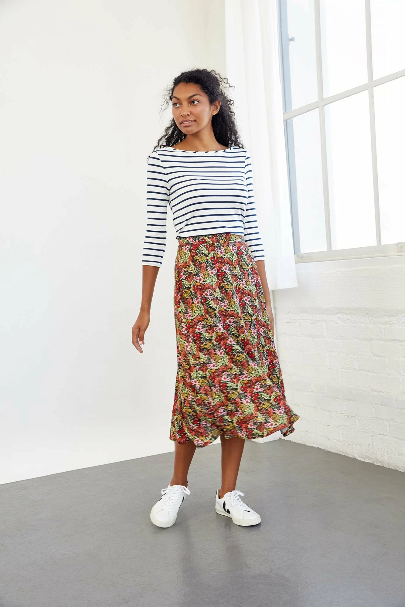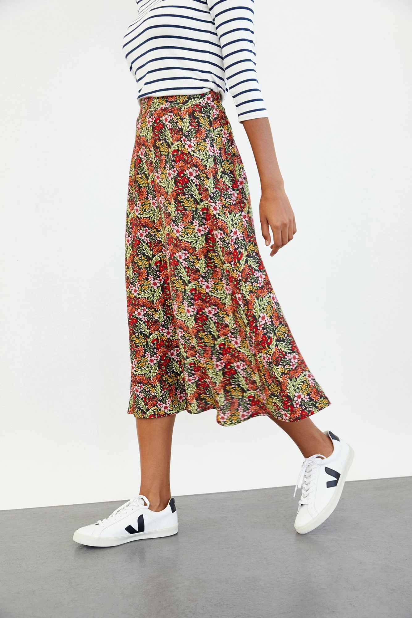 Midi skirt with a flat front and elastic at the back waist, made from our luxuriously silky viscose, a fabric made from wood pulp.