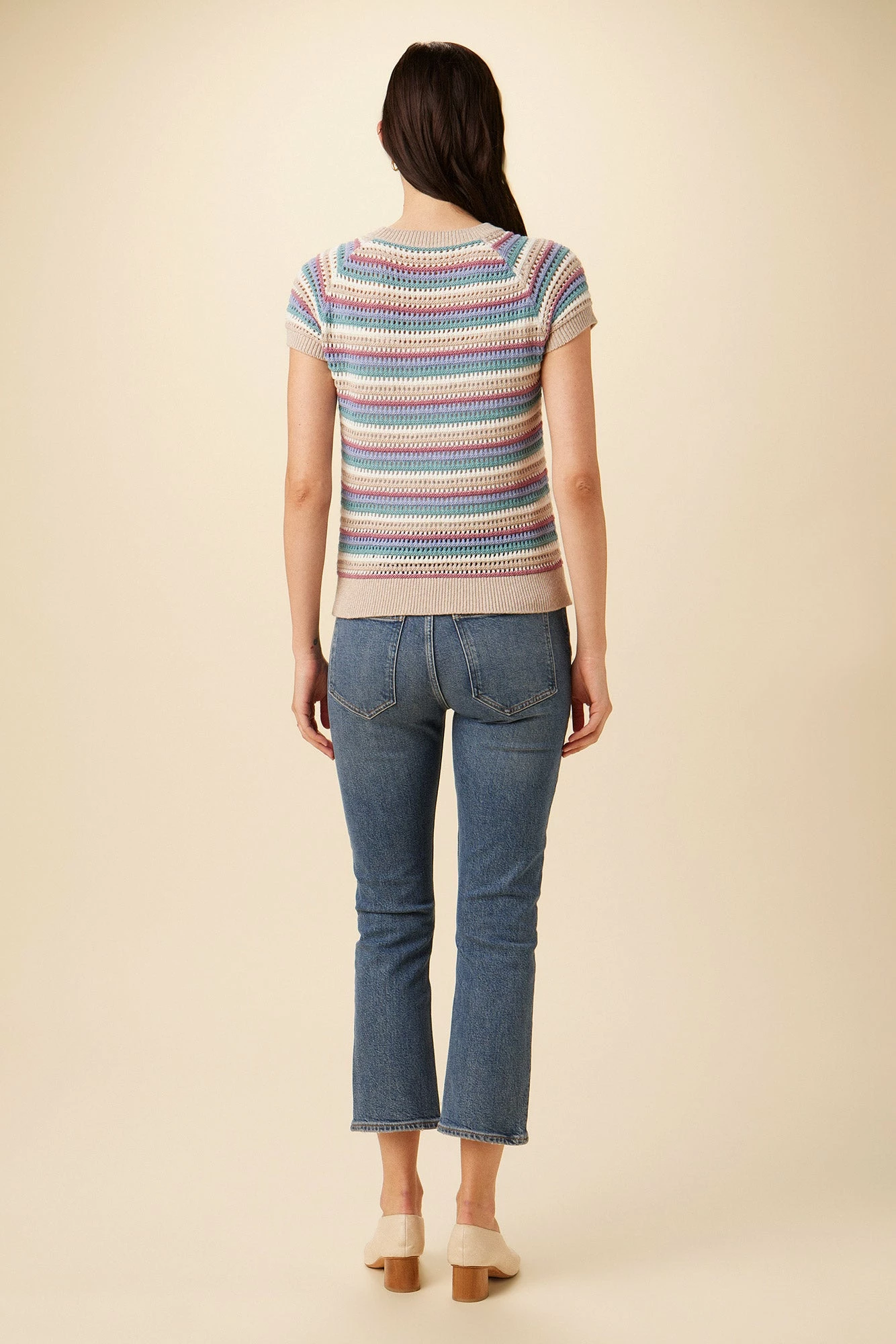Fine gauge crew neck sweater tee, made from a super soft mixture of linen, cotton and CiCLO® polyester. We suggest pairing this cropped tee with your favorite high-waist bottoms.