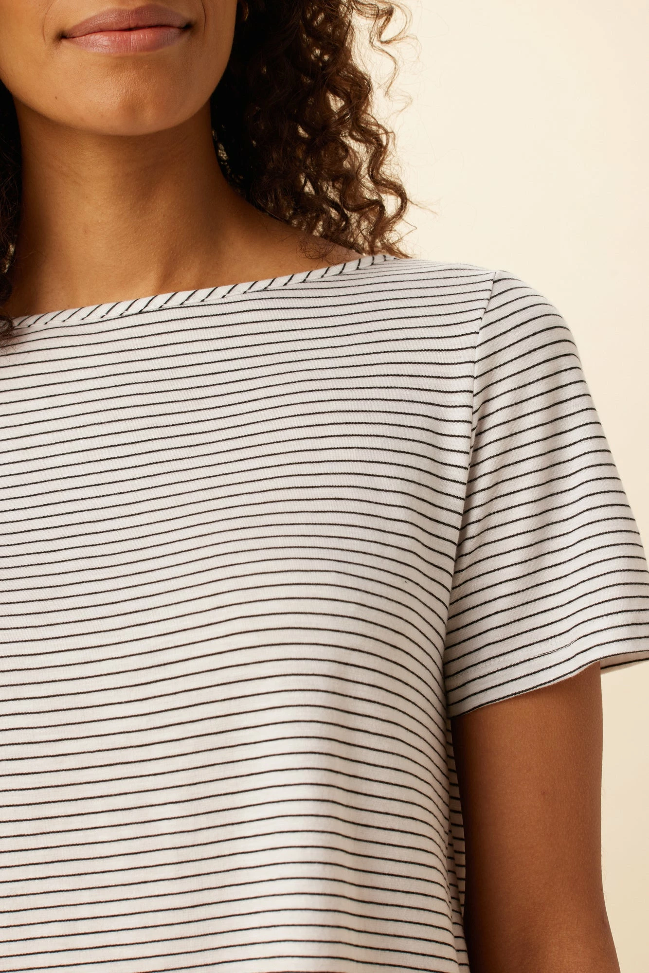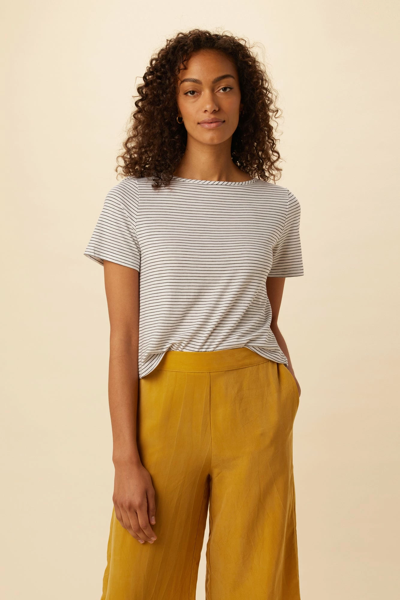 Short sleeve, cropped crewneck t-shirt, made in our Reverie Slub, the perfect blend of Organic Cotton, Modal and Tencel. This relaxed fit tee is perfect to pair with your favorite high-rise bottoms.