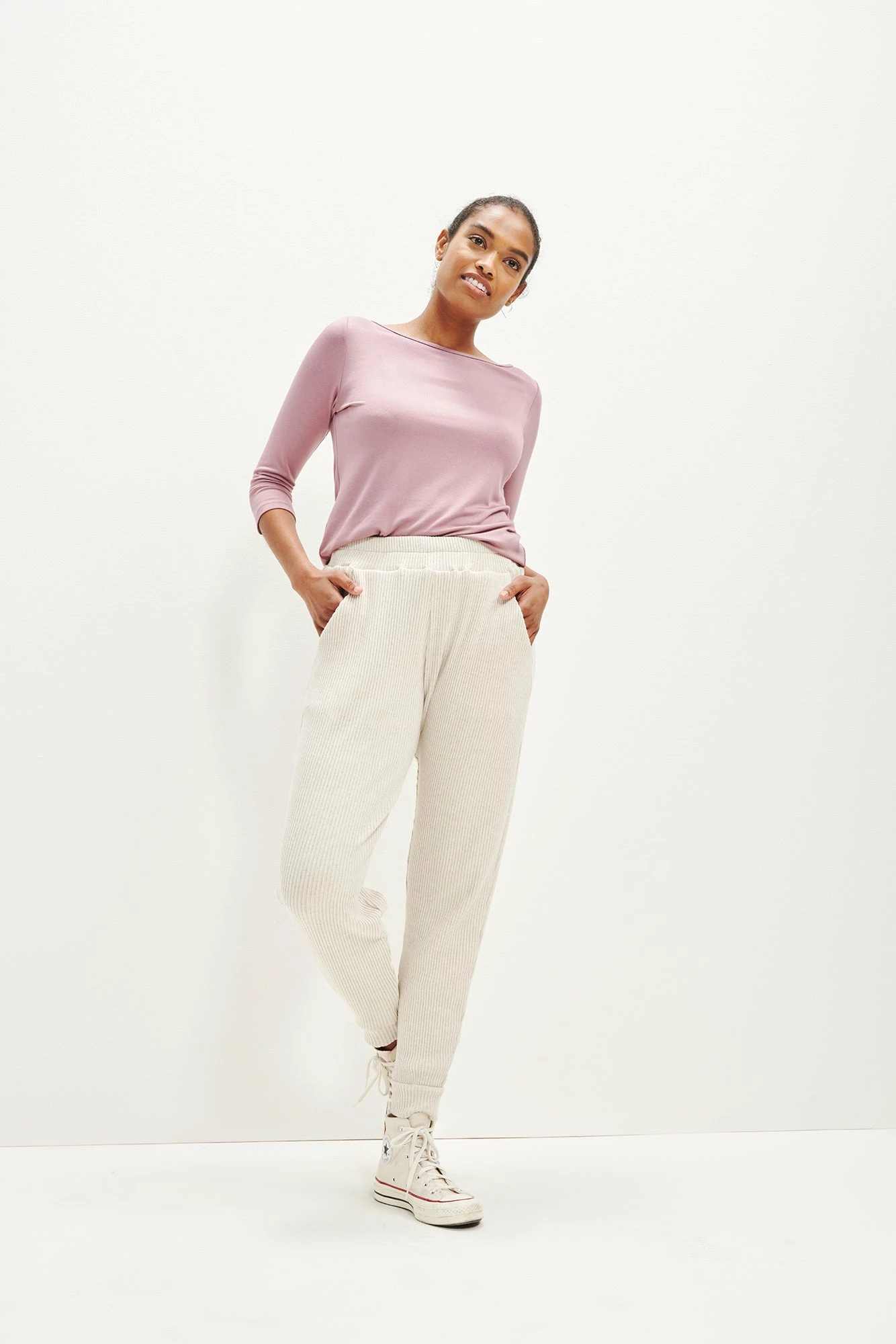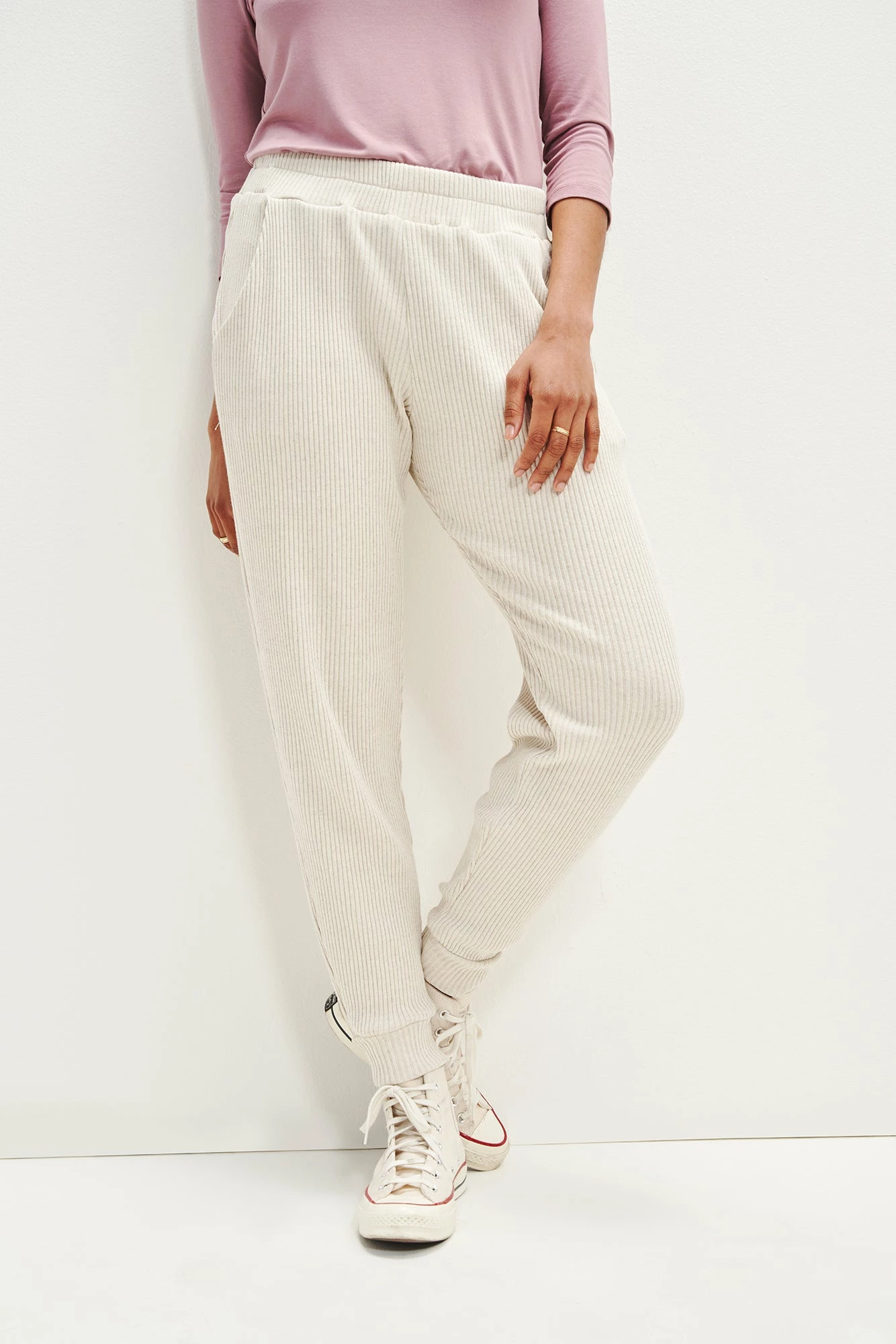 Our best-selling jogger pants now updated in our soft and lightweight linen rib fabric. Skylar features an easy, relaxed silhouette, stretch waist, and side seam pockets.