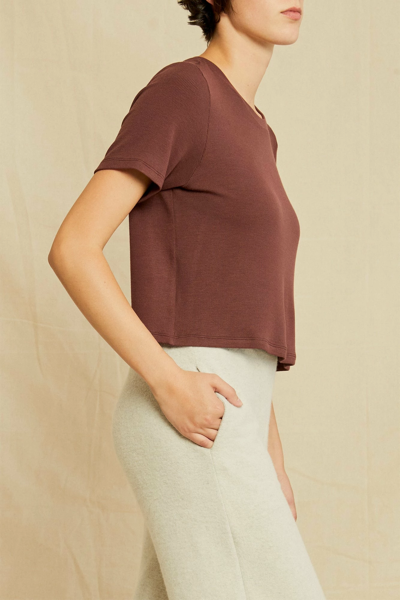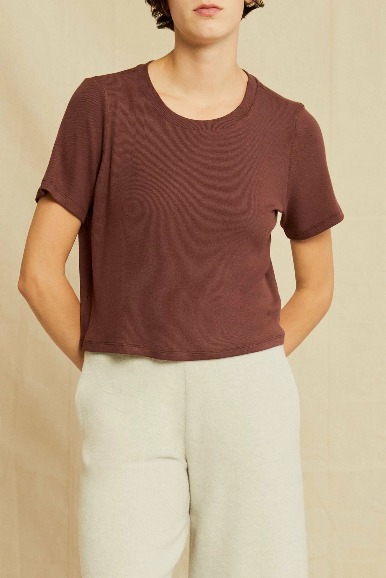 - Cropped relaxed fit crewneck top