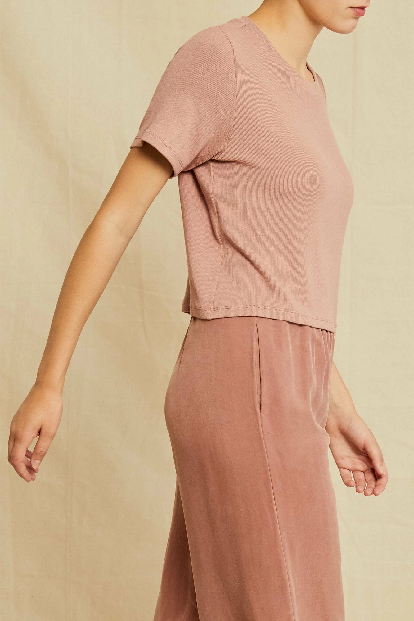 - Cropped relaxed fit crewneck top