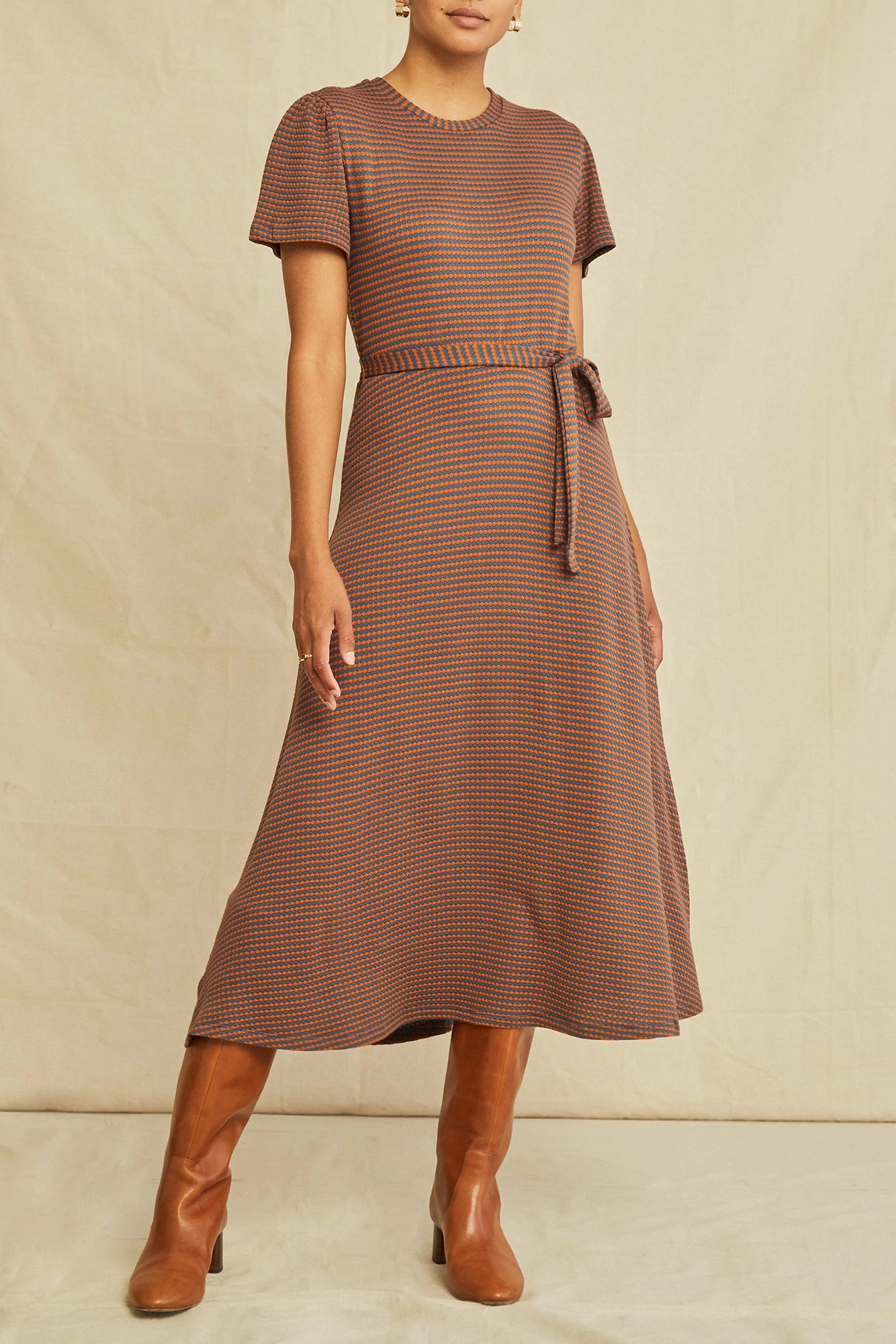 Be the first to review “Tenille Scallop Knit Dress – Azure Umber Stripe” Cancel reply