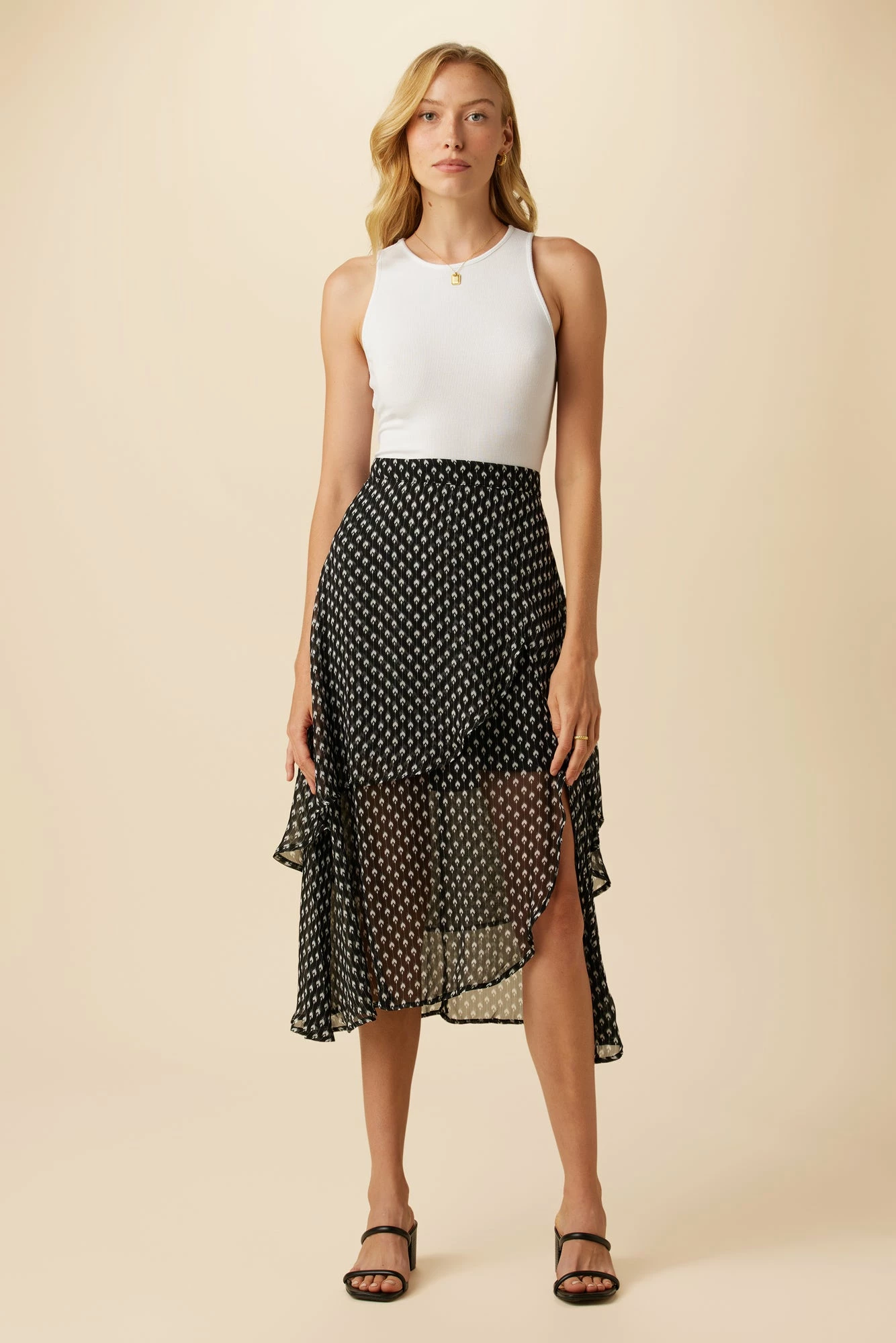This breezy ruffled skirt features two tiers of chiffon fabric, an invisible side zipper and is made from our Viscose Chiffon fabric, with a built-in recycled polyester lining.