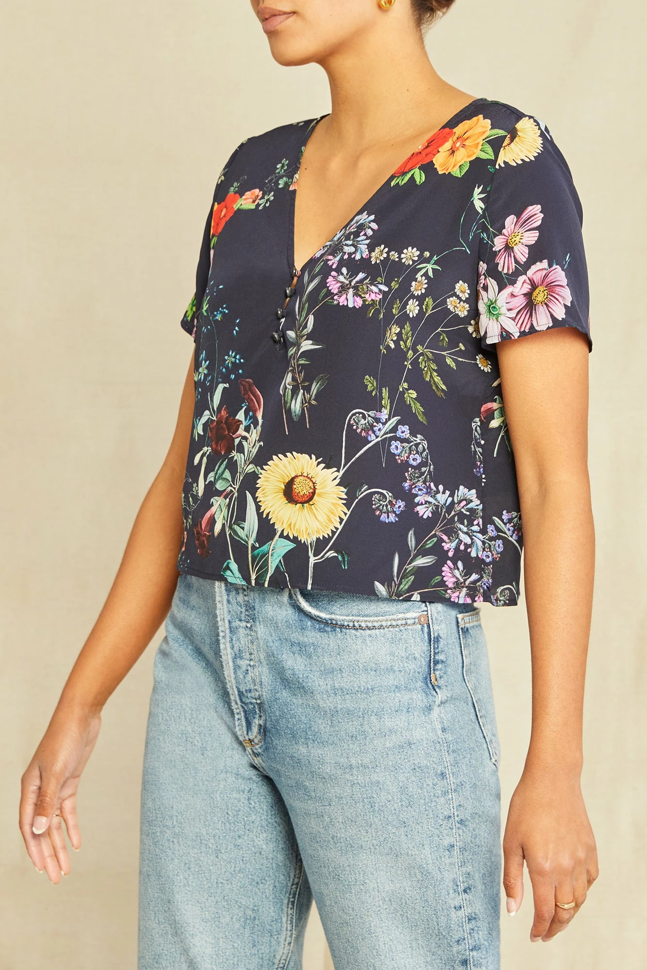 Short sleeve top with a v-neck and relaxed, cropped fit. Made from our luxurious Mulberry silk, this elevated basic is a must have for any wardrobe.